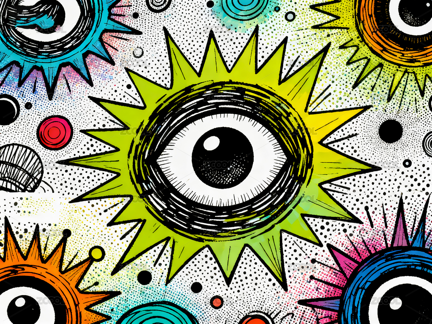 奇幻科技巨大木框宝石电子眼3D立体插画