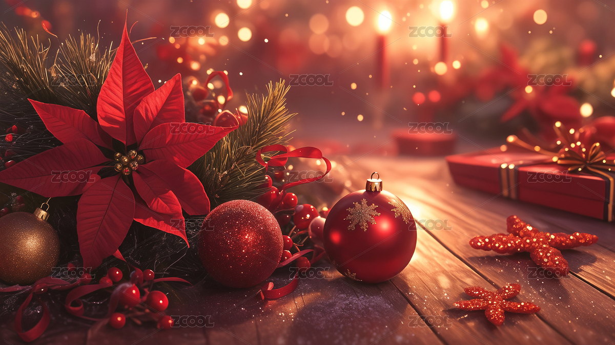 圣诞节,节日背景,圣诞装饰,圣诞树,礼物,雪花,圣诞灯,红色,绿色,金色