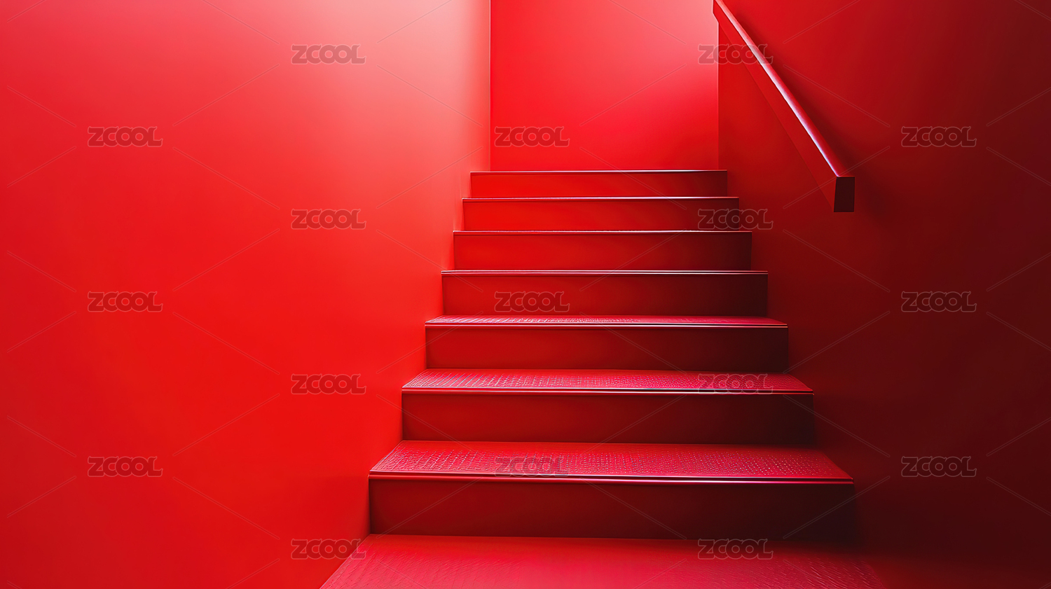 红色台阶上的红色空楼梯