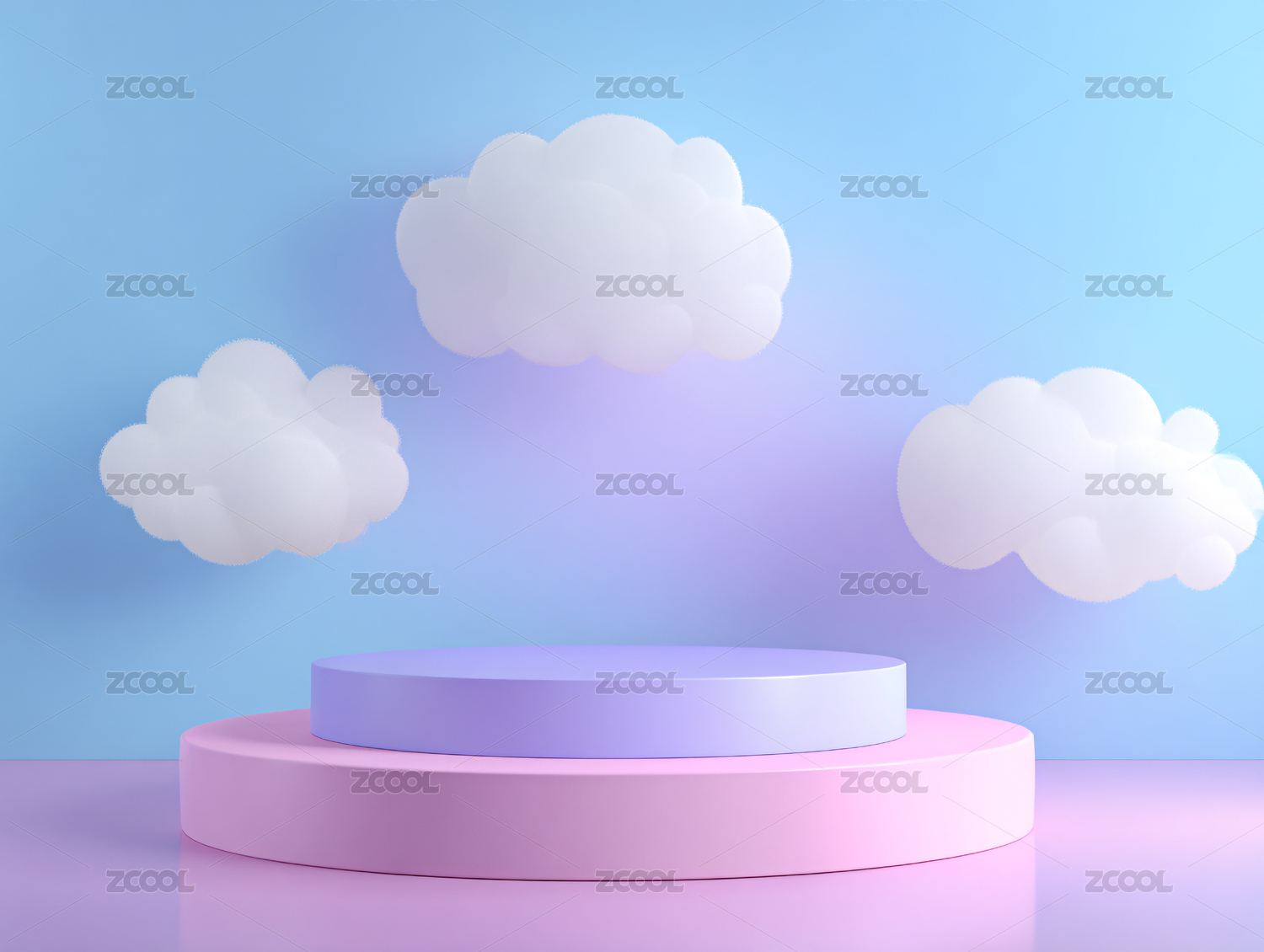 梦幻云朵与渐变色圆台