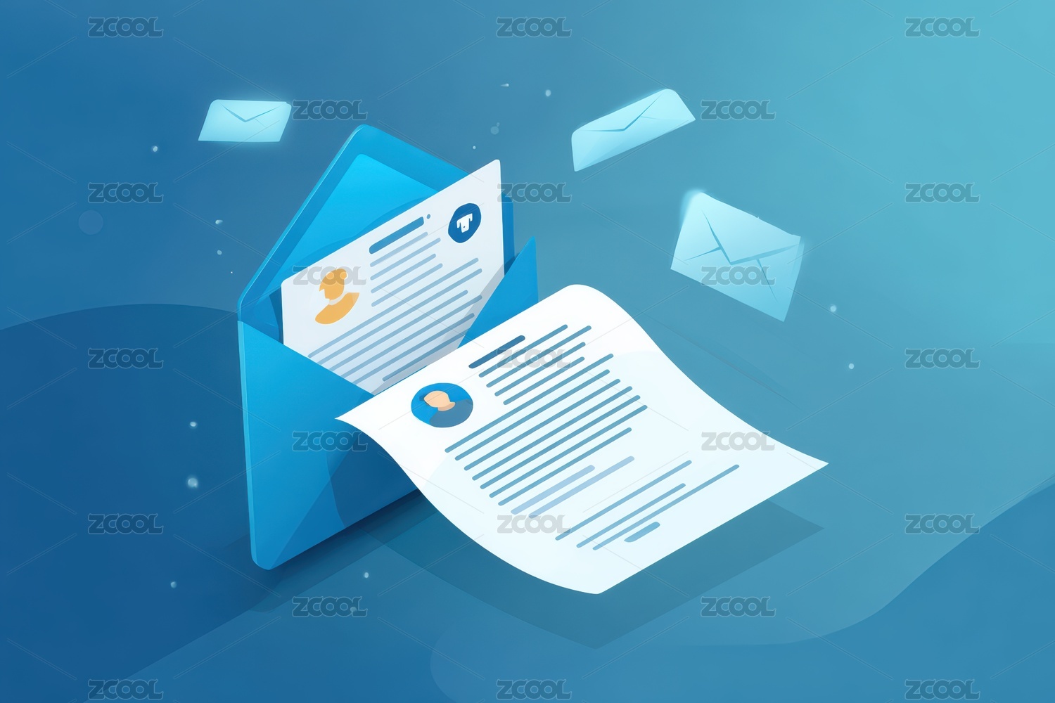 蓝色背景上的邮件图标设计