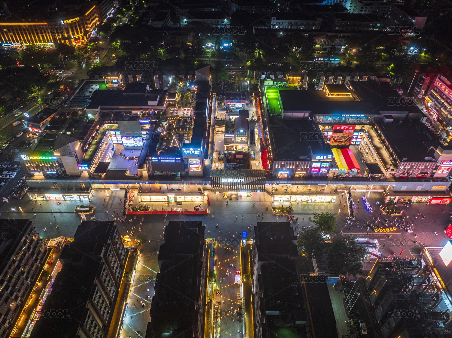 航拍西安大雁塔大唐不夜城城市风光夜景