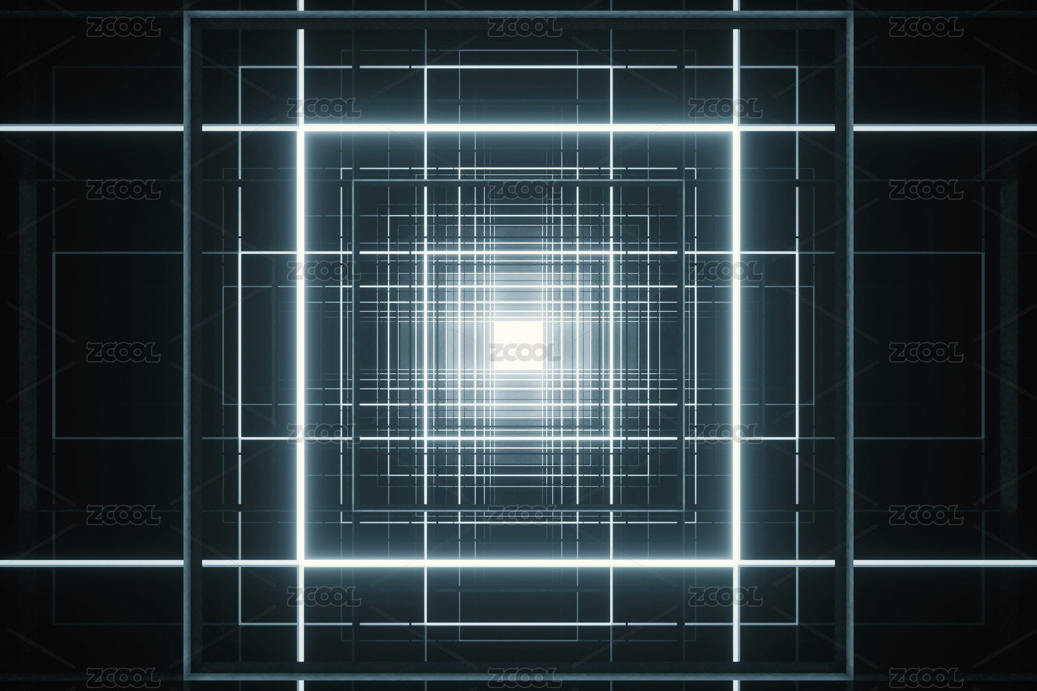 有发光线条条形灯组成的几何形状科技感通道隧道背景素材