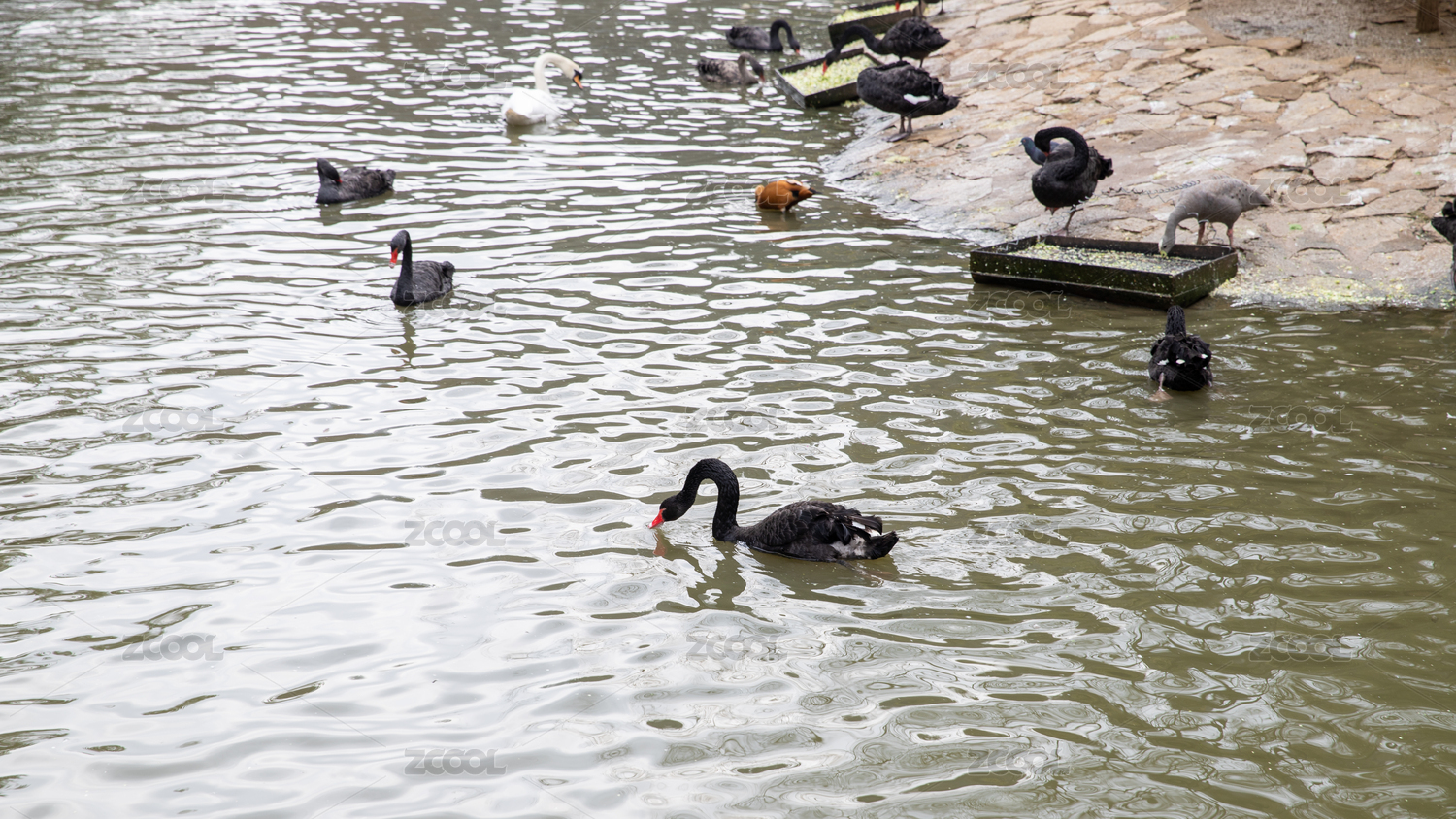 丛林水塘上的白鹭、东方白鹤和白枕鹤