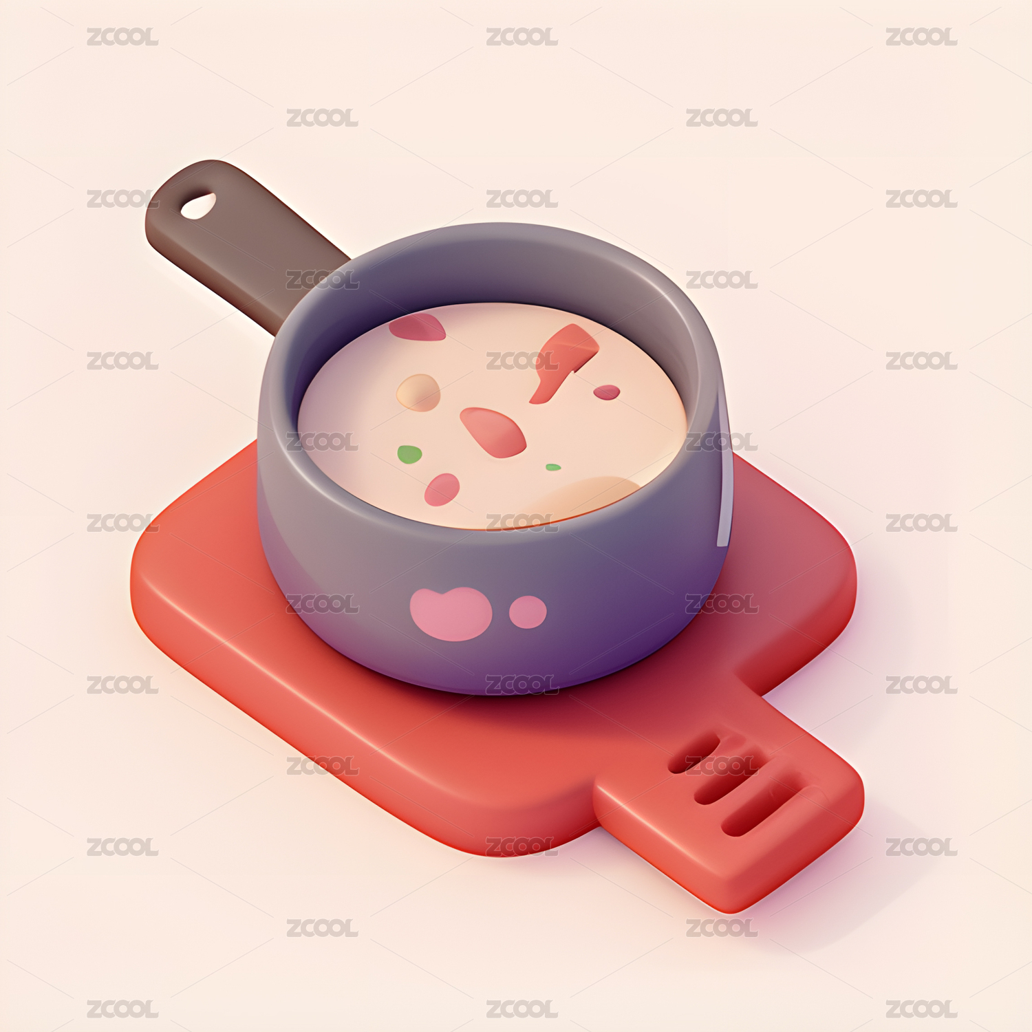 彩色时尚卡通可爱生活用品厨具汤锅图标插图