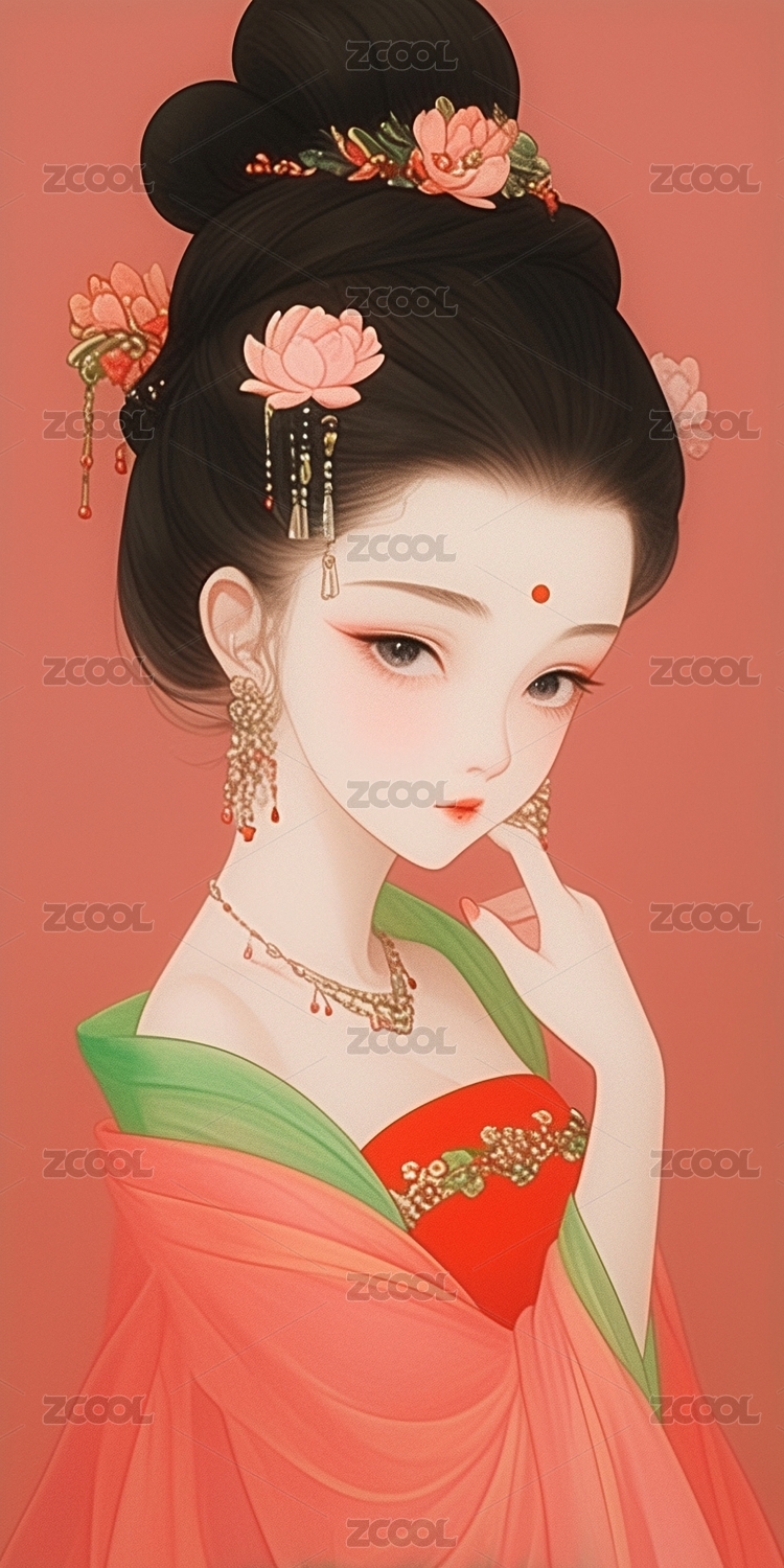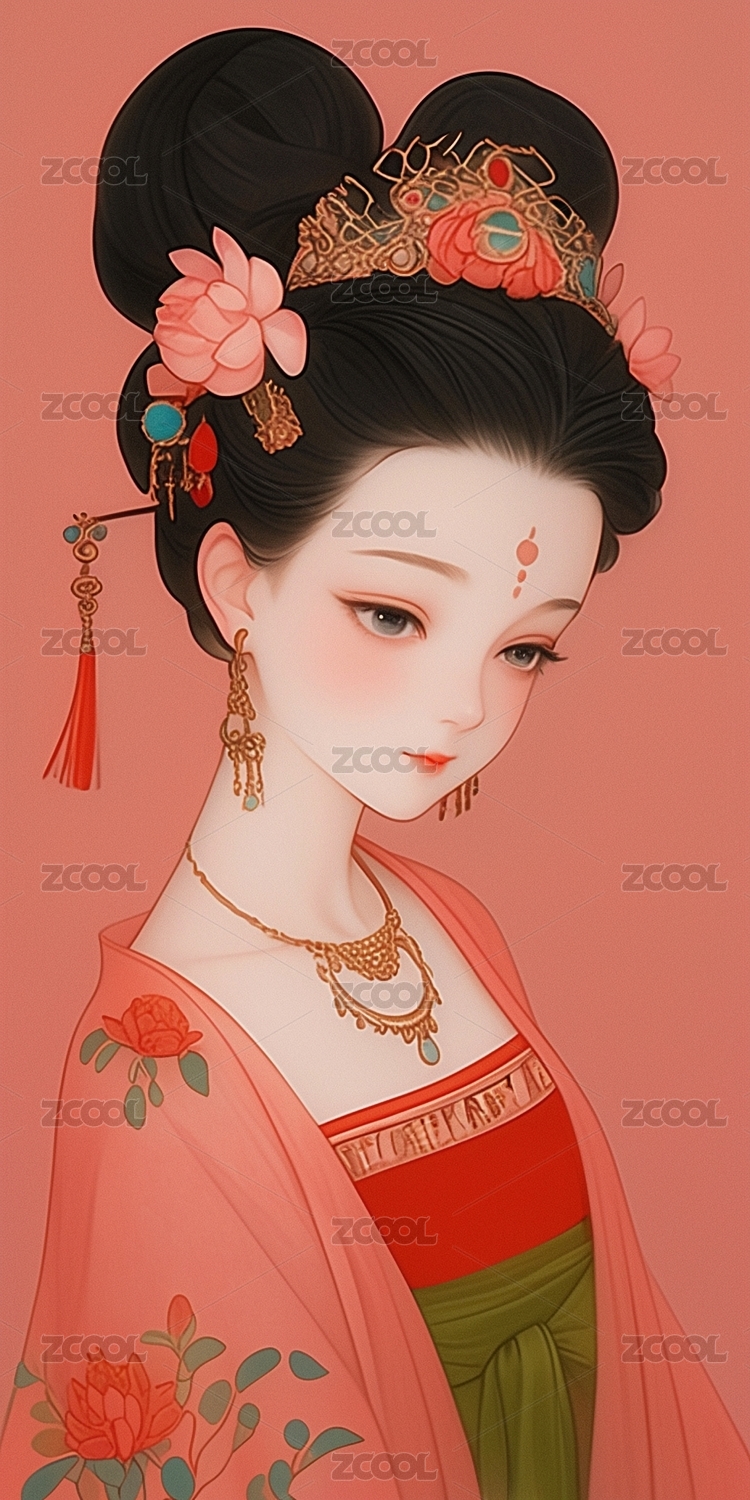 古风,唐朝,汉服,粉色,少女,女孩,梦幻,内插,封面