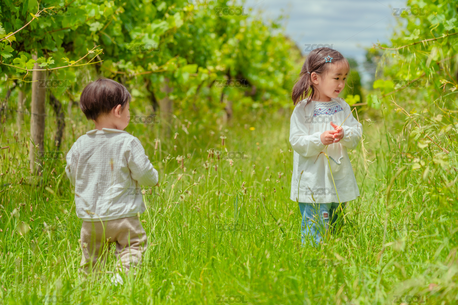 葡萄园,山顶,草坪,男孩,女孩,小孩,幼儿,朋友,童年,葡萄树