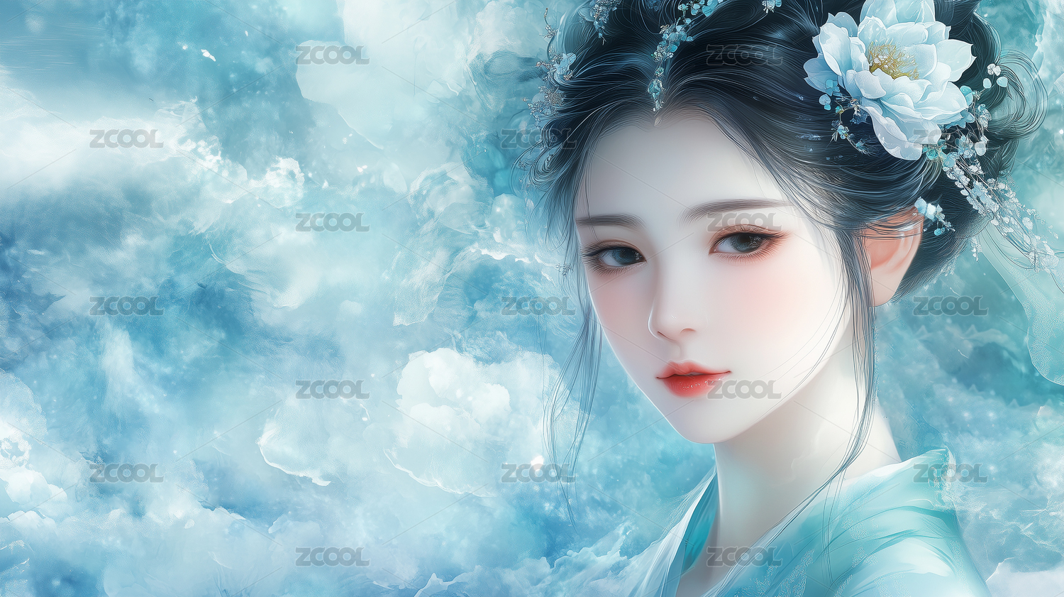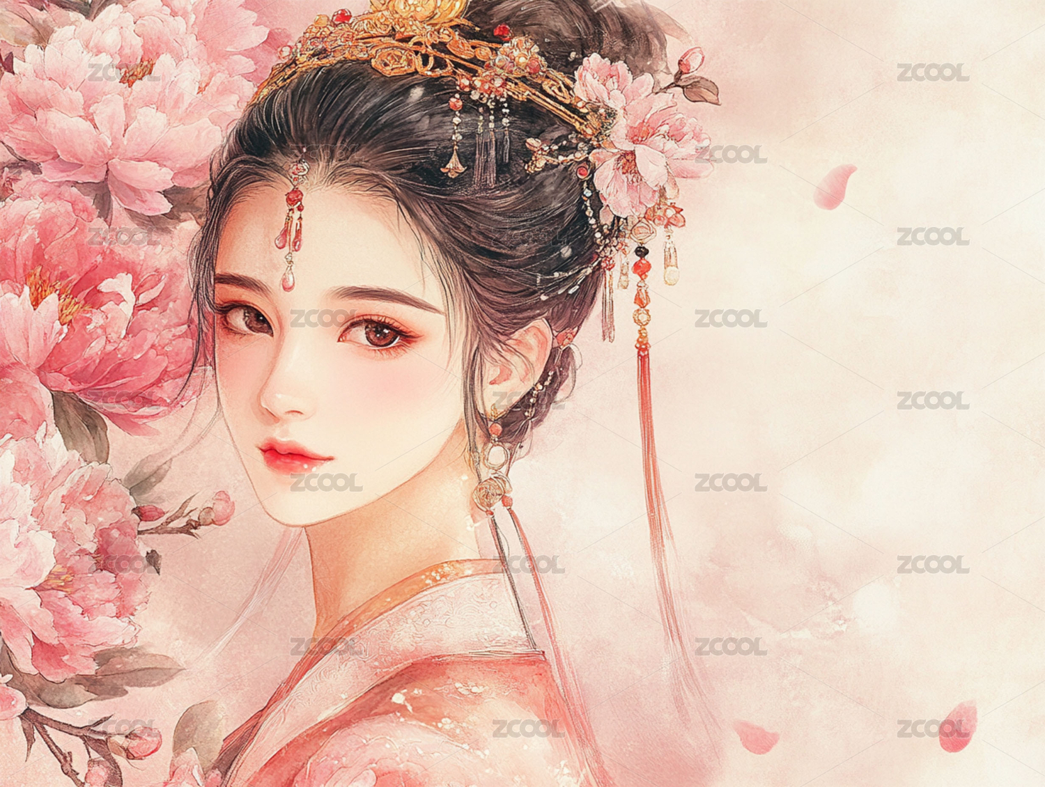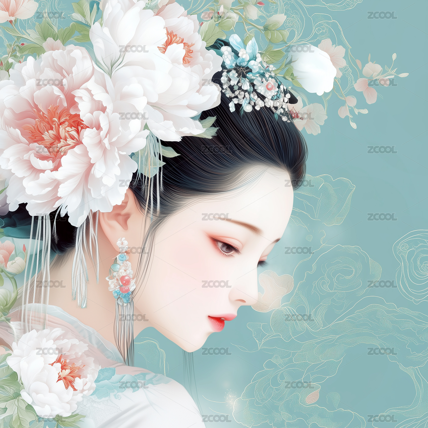 国风,中国,国潮,插画,神话,人物,神仙,仙女,牡丹,仙子