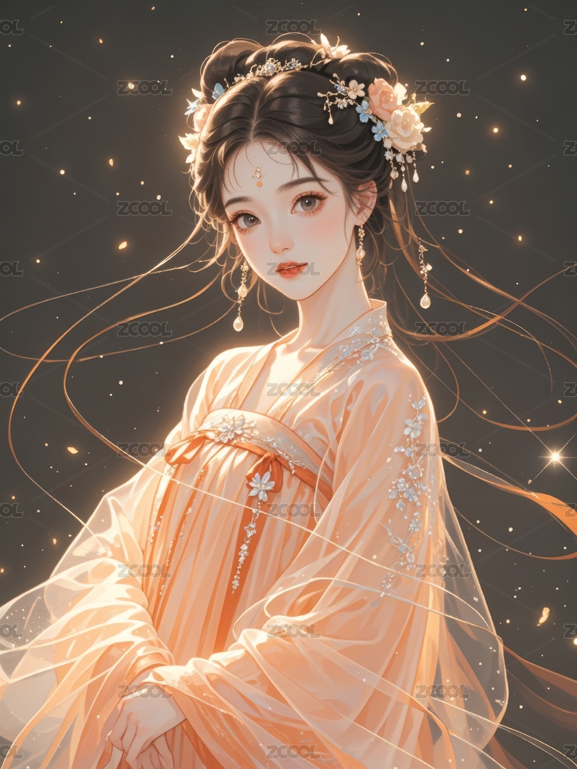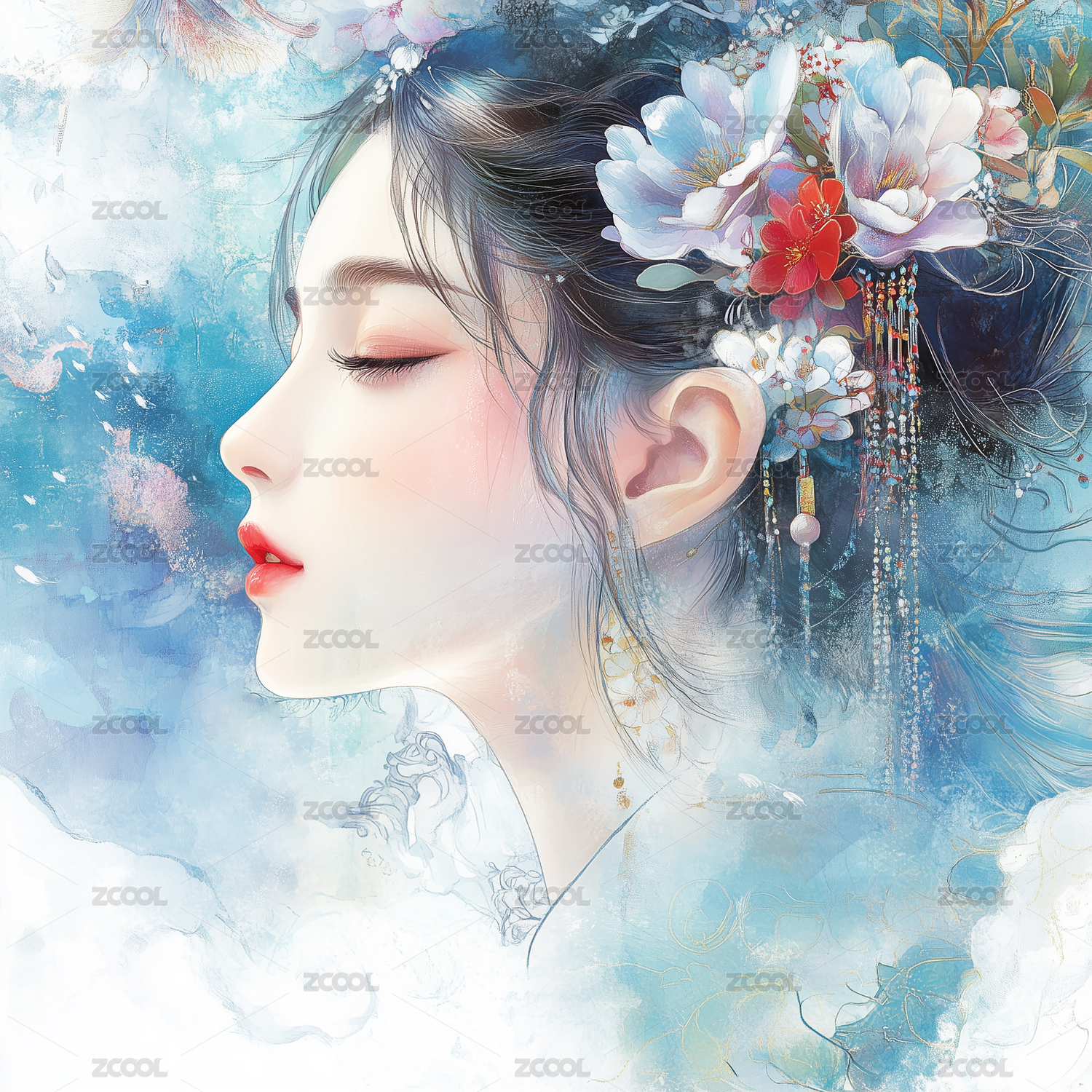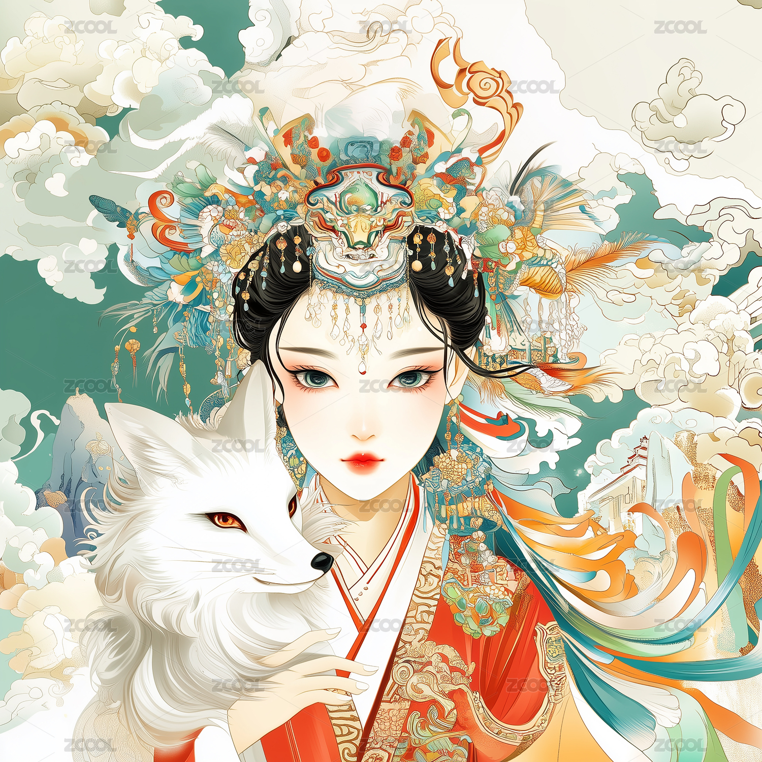 国风,中国,国潮,插画,神话,人物,神仙,仙女,牡丹,仙子