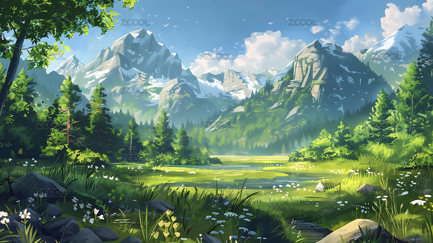 森林,植物,绿色,山谷,天空,旅行,岩石,夏天,雪,高山