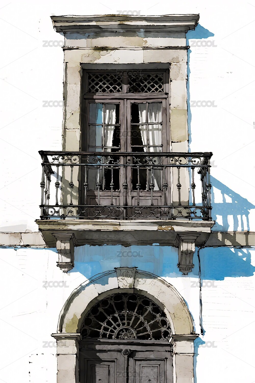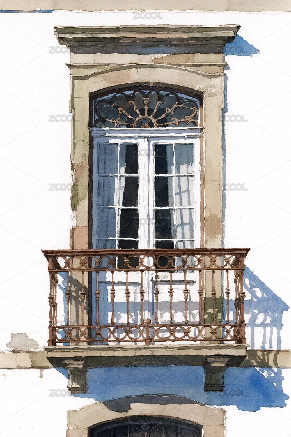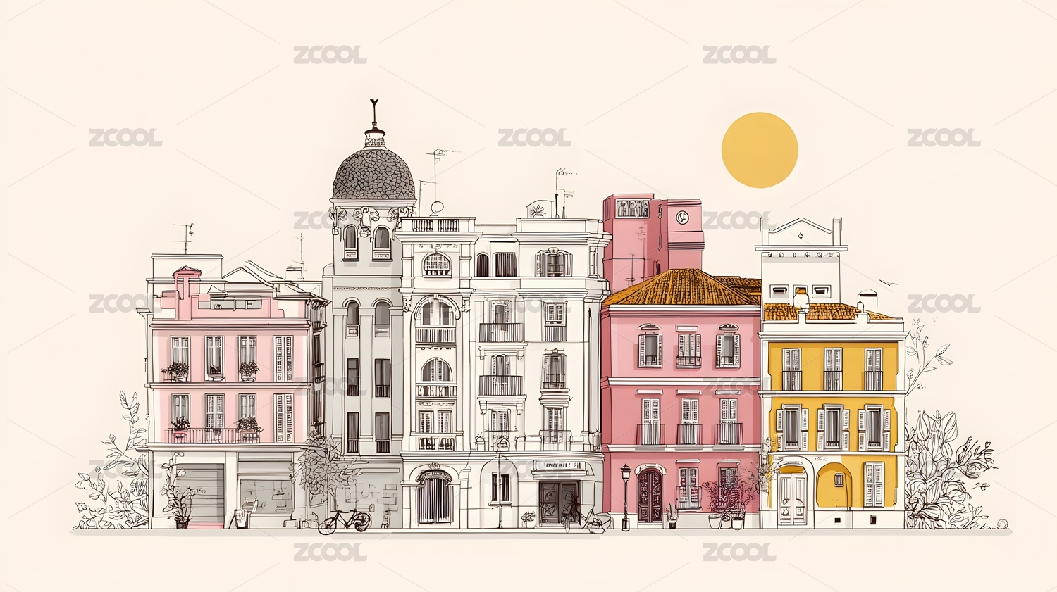 街道,风景,树木,植物,水彩,绘画,建筑,景观,户外,设计