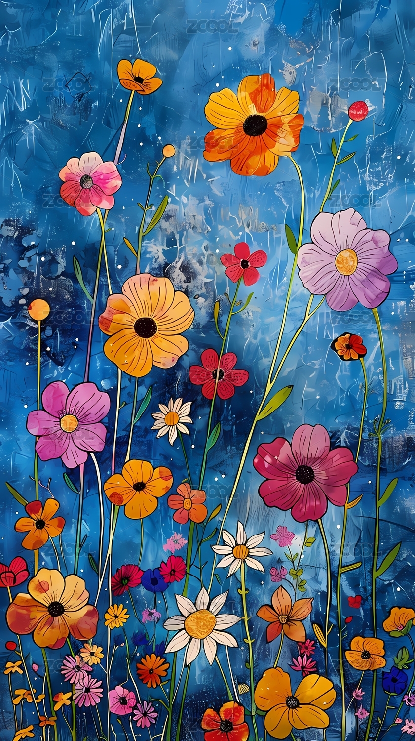 复古,云彩,蓝色,天空,花卉,植物,自然,图案,艺术,油画