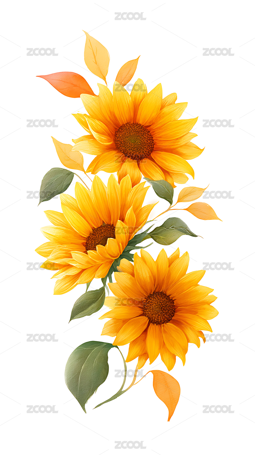 白色,向日葵,剪贴画,花卉,花束,花,水彩画,复古,自然,数字