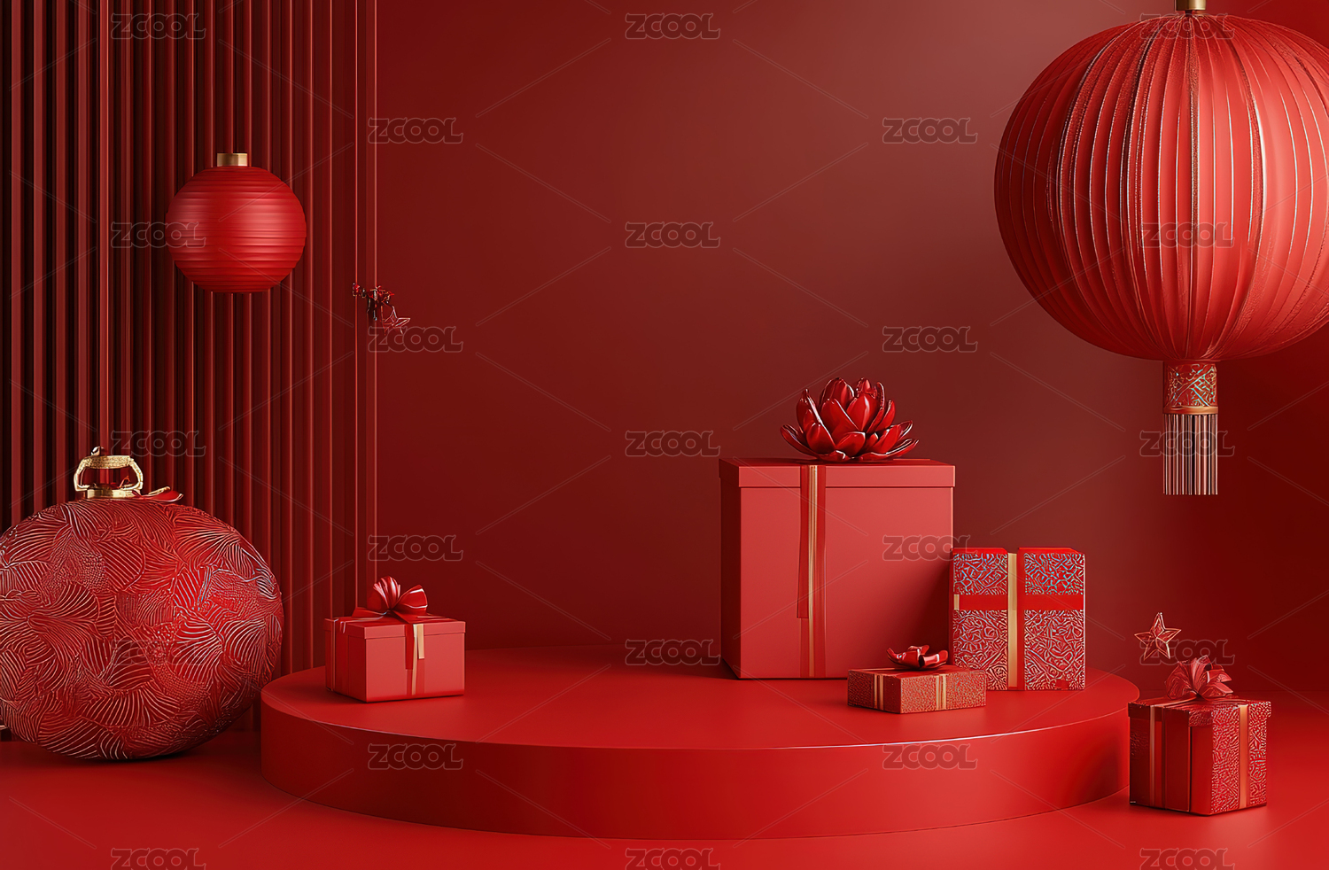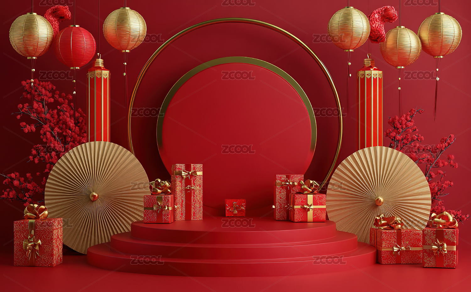 红色喜庆新年背景电商展示台