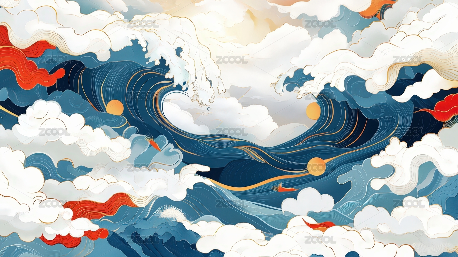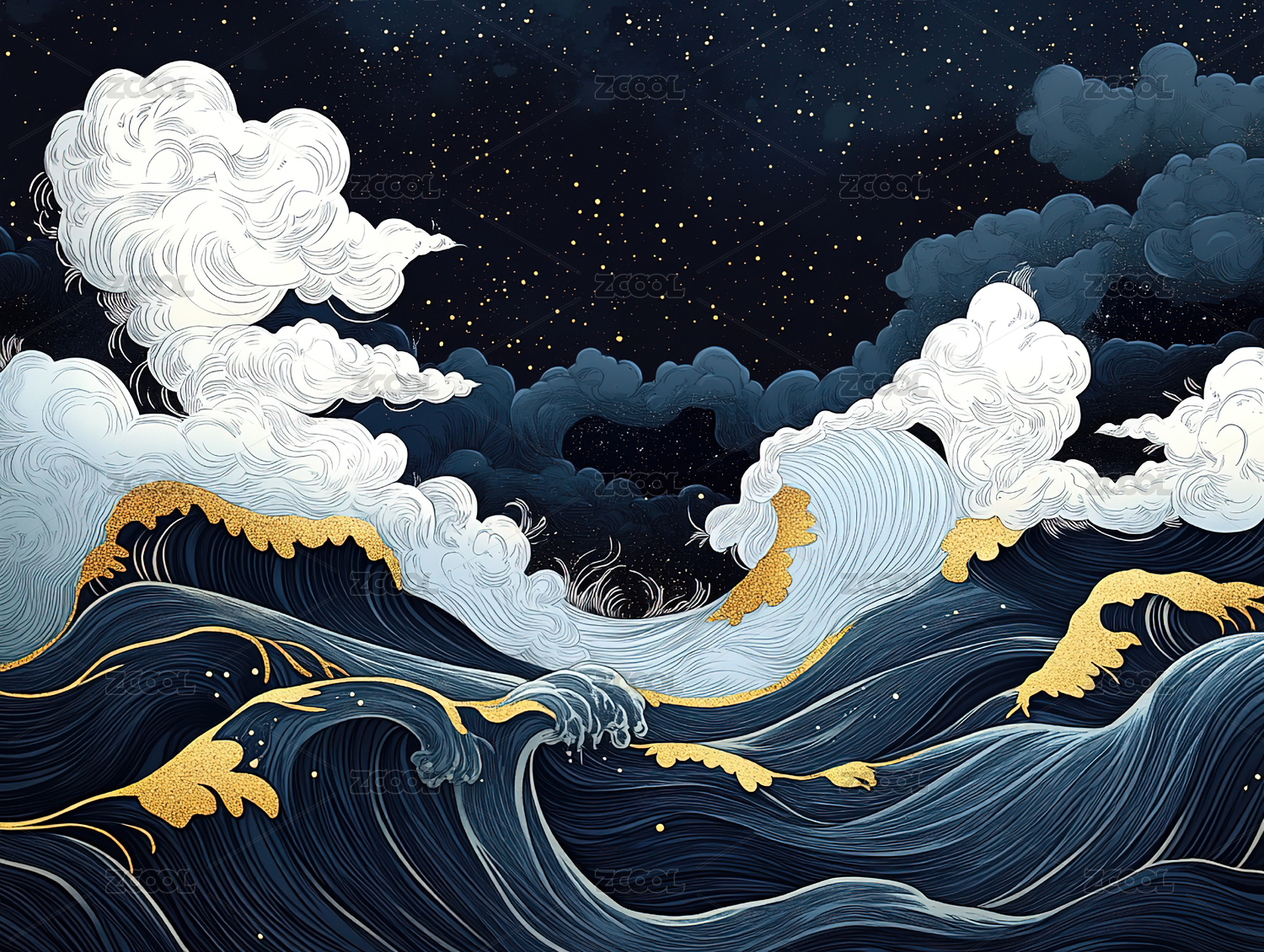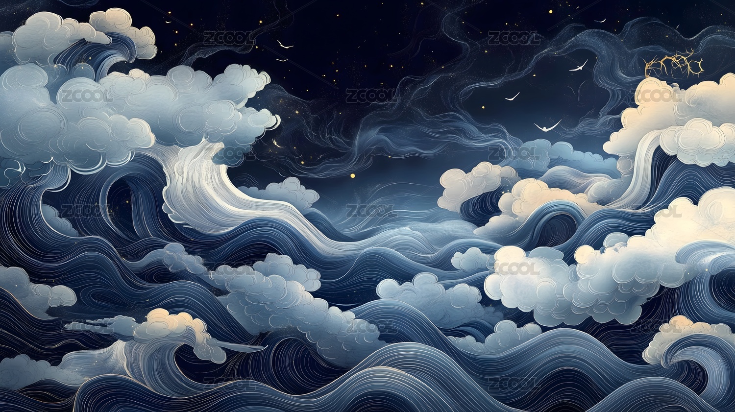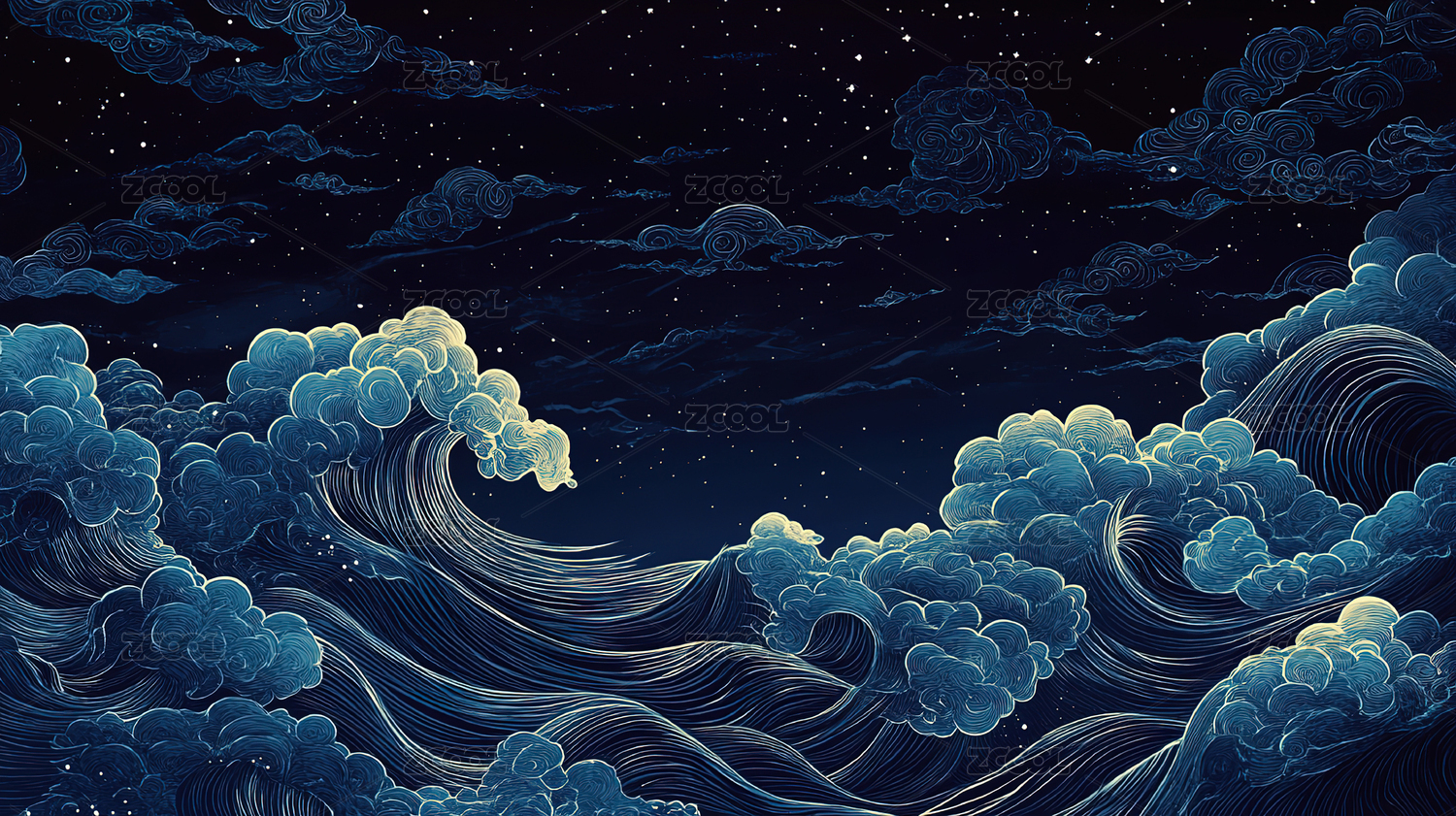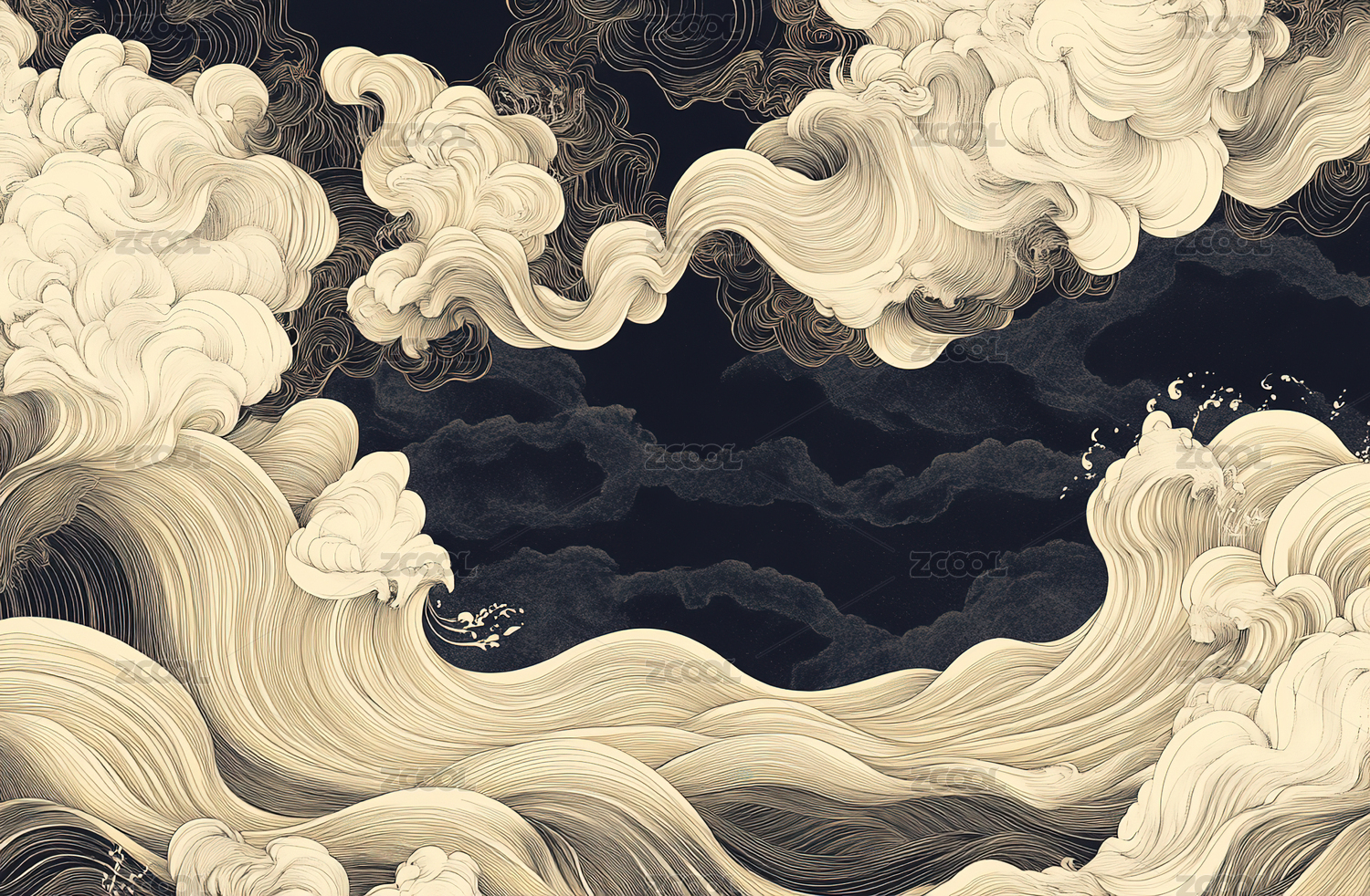 宇宙,云,纹理,传统,水,图案,装饰,中国,线条,插画