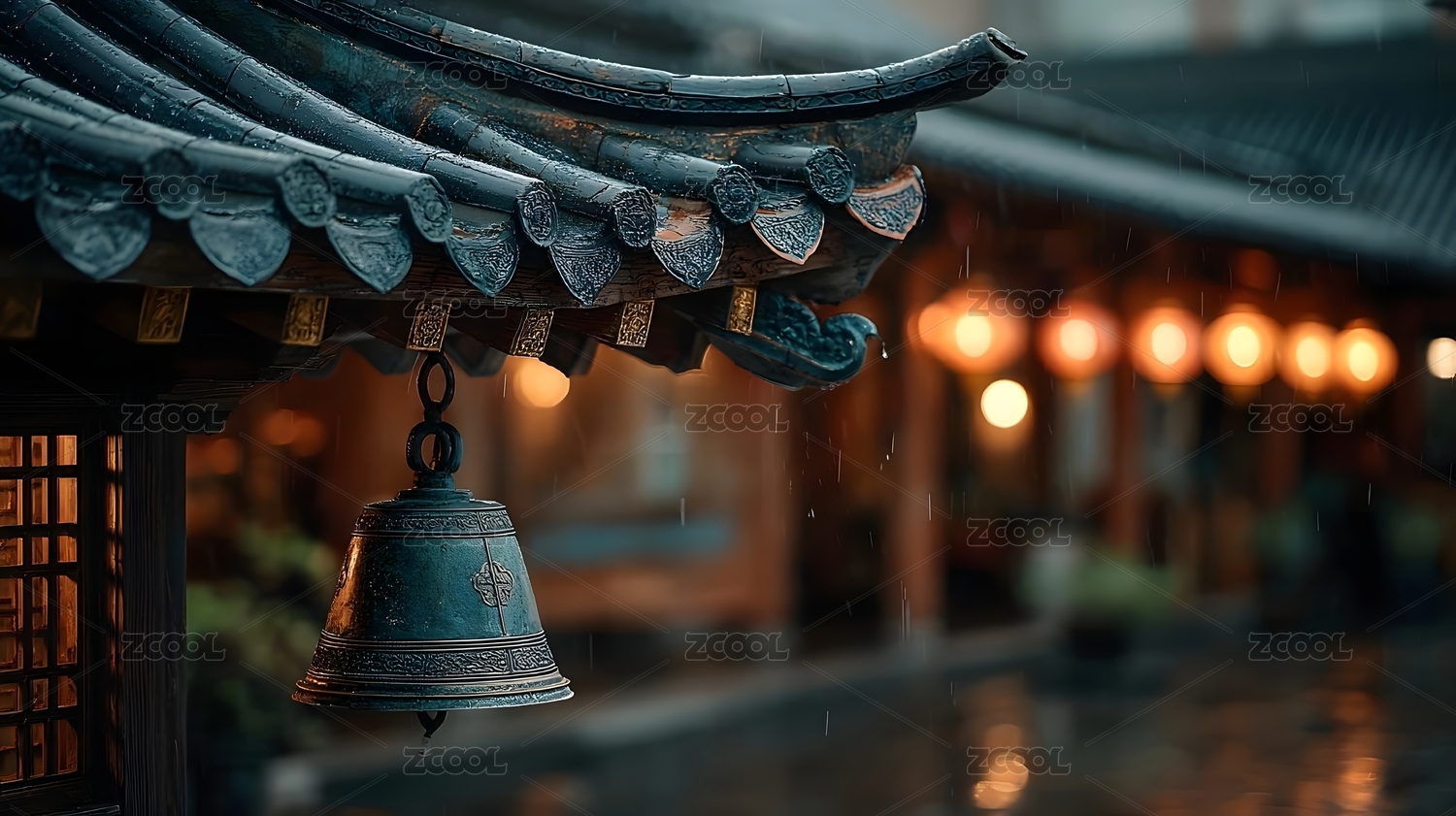 陕西省西安市广仁寺佛寺大殿门前铃铛特写