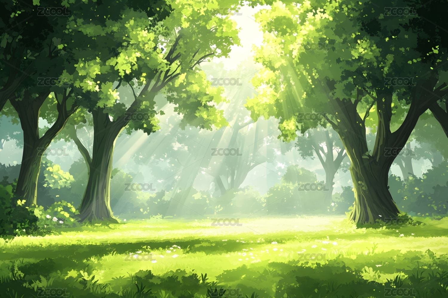 清新,植物,宁静,草丛,树木,森林,草地,阳光