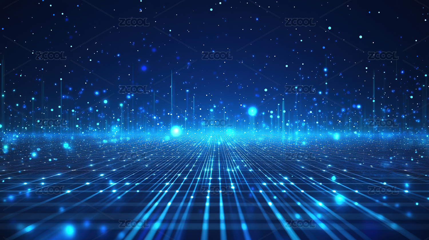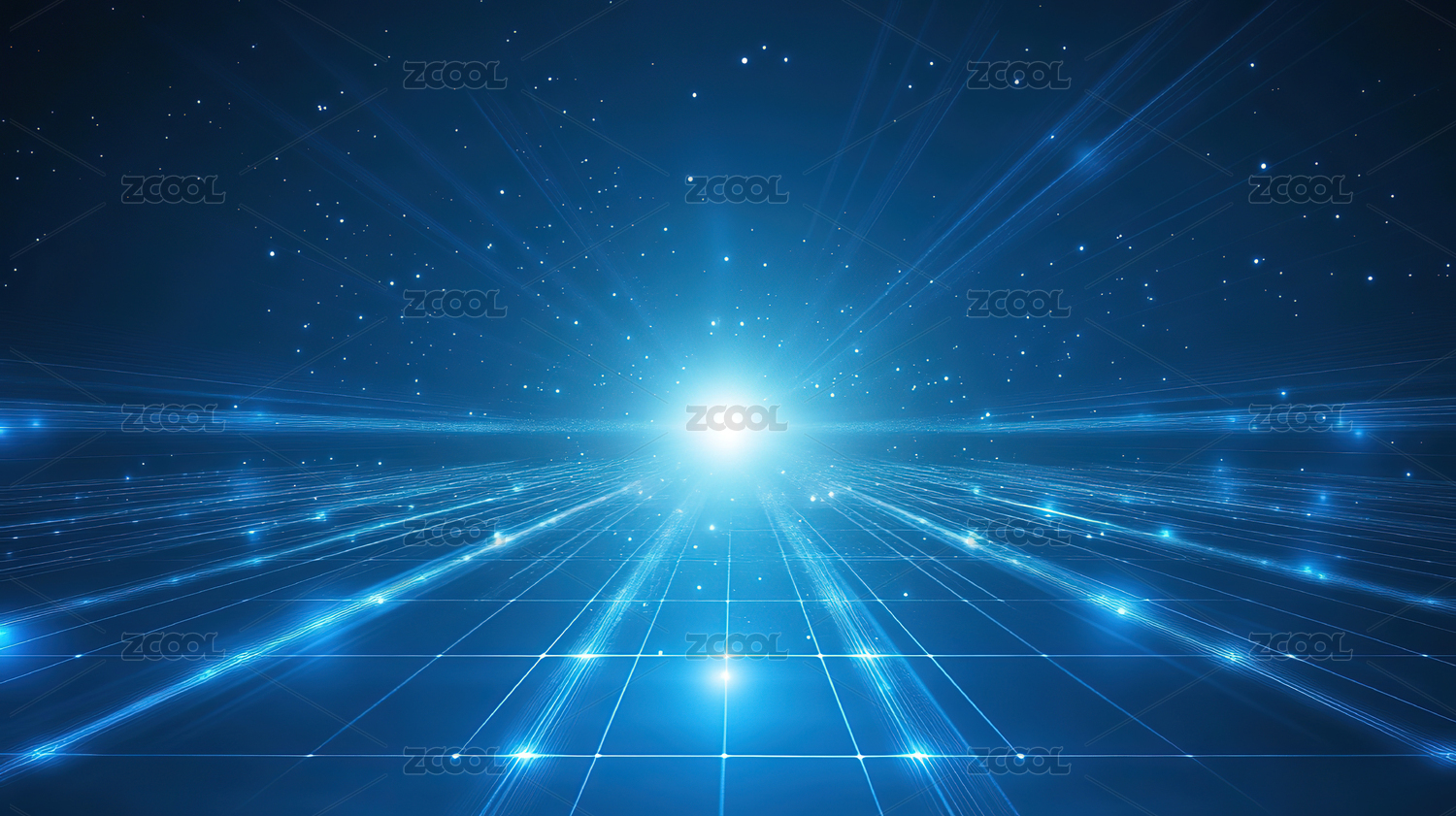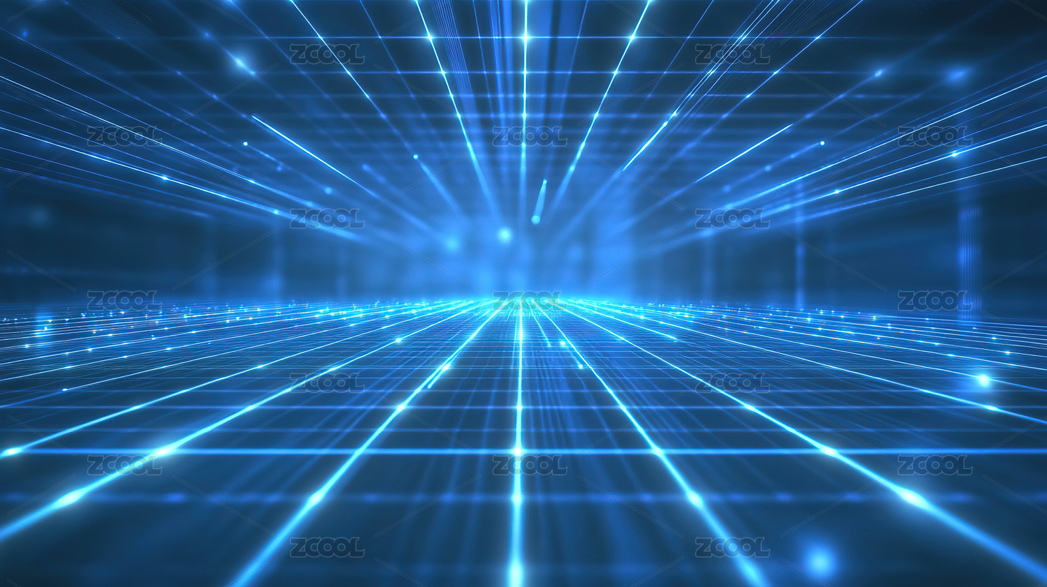 数码科技蓝色网格点线光束海报背景