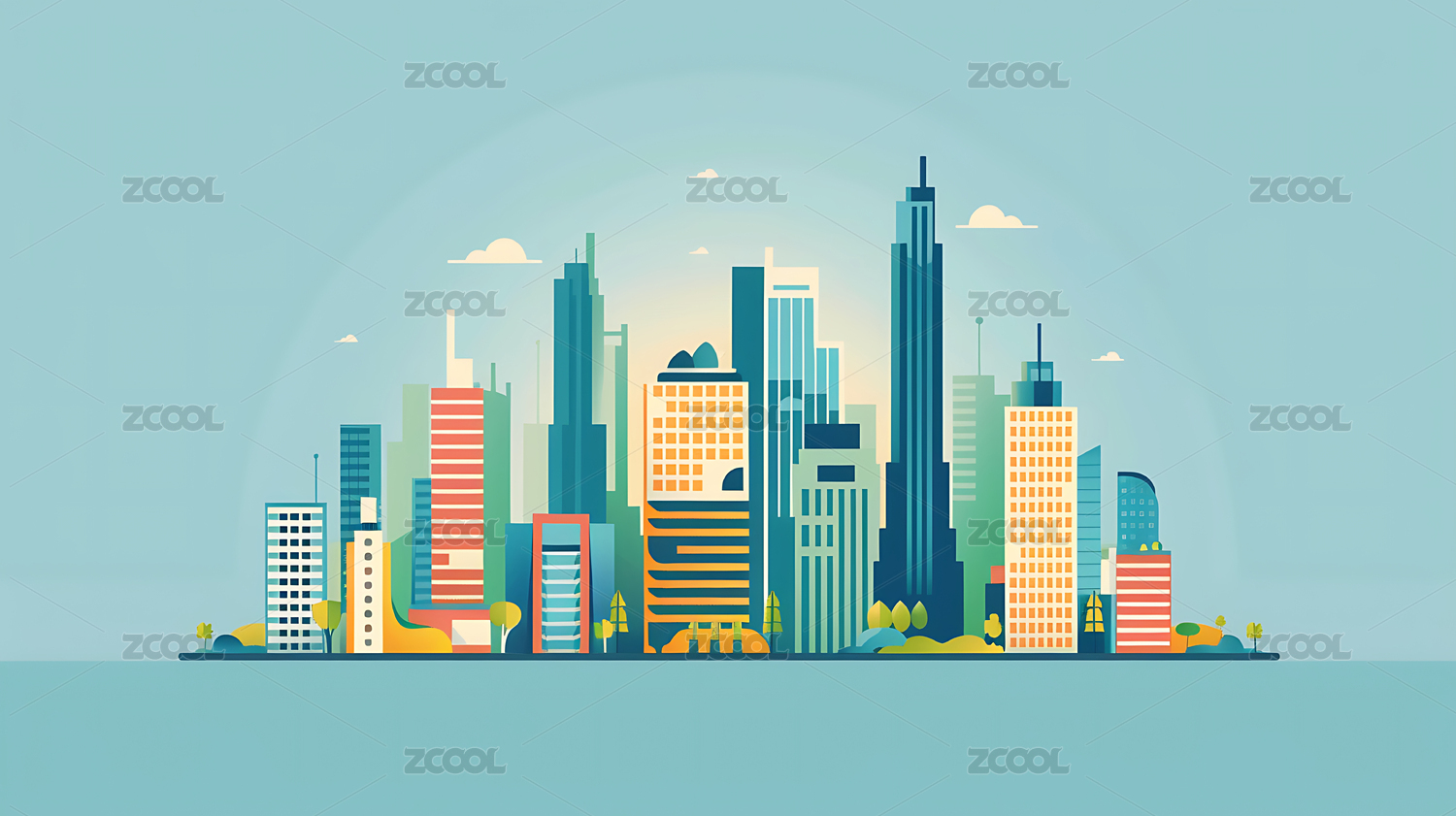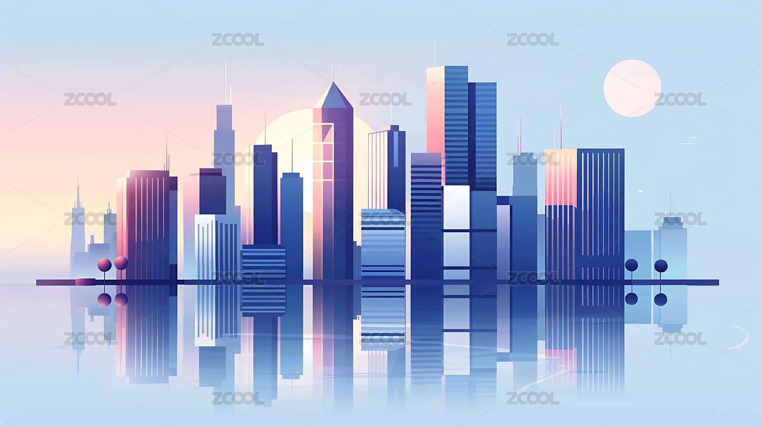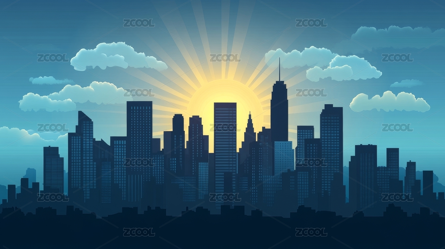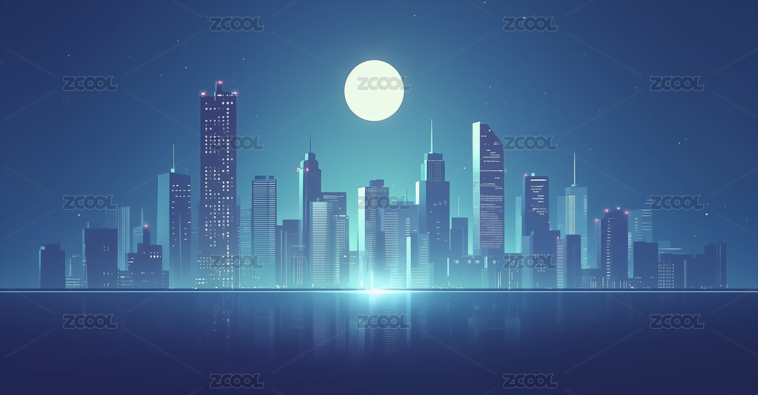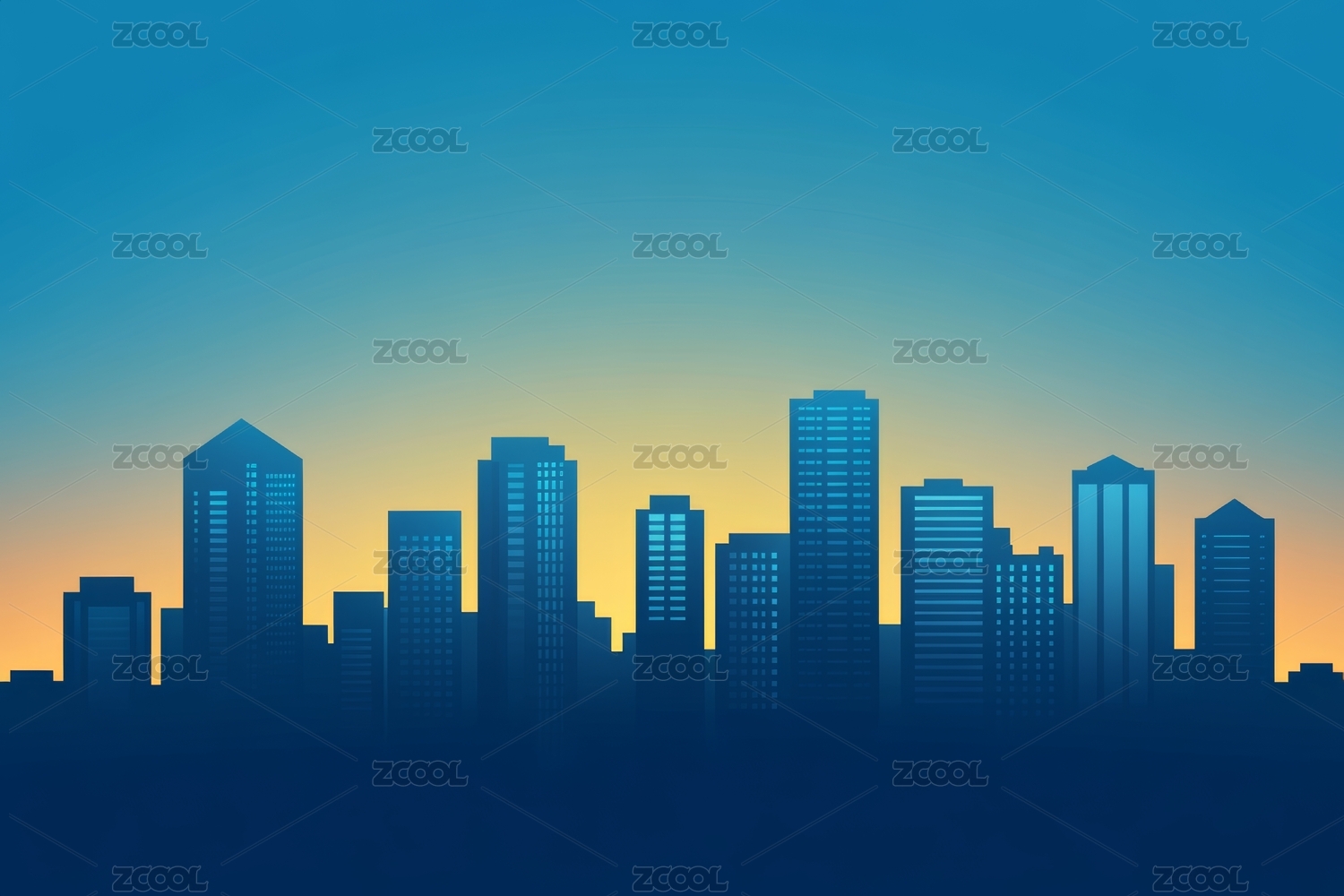 城市,插画,夜晚,照亮,天空,白昼,扁平风,概念,摩天大楼,建筑