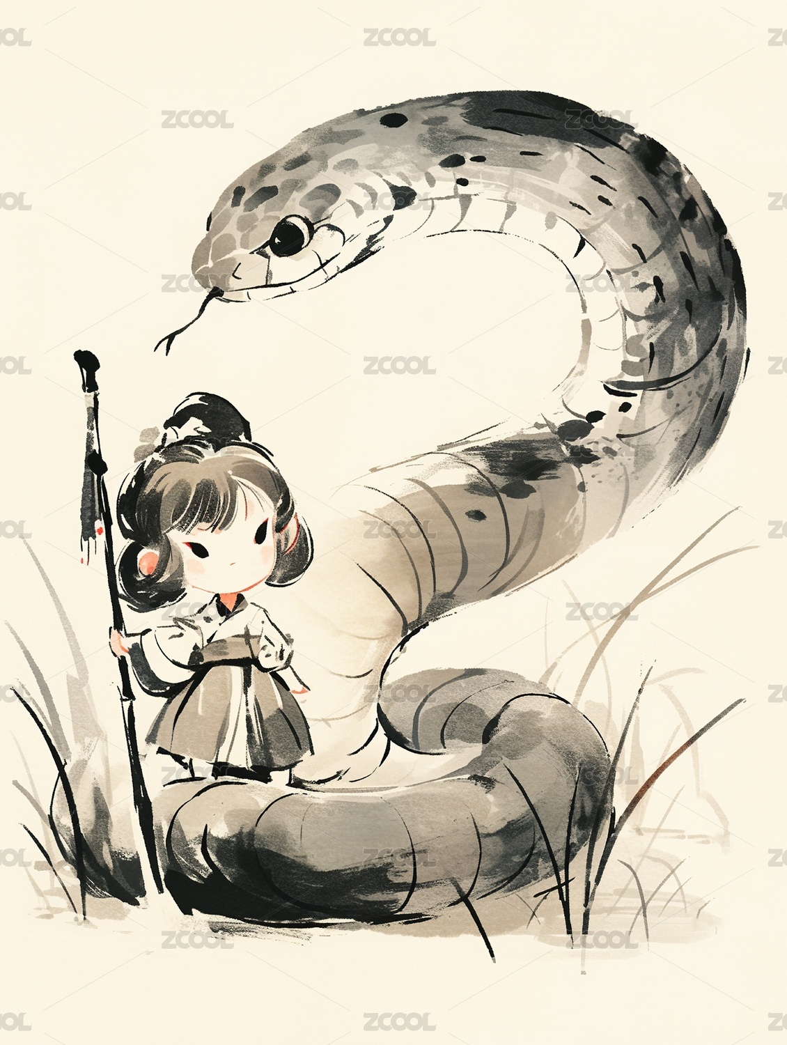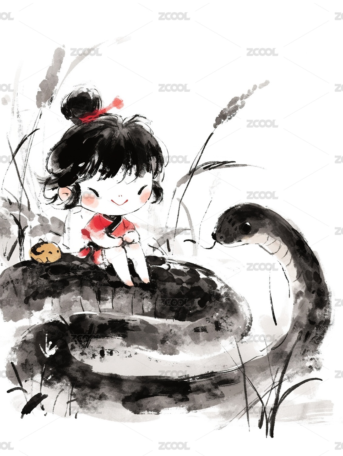 动物,可爱的,蛇,新年,春节,插画,蛇年,三维,3D,水彩
