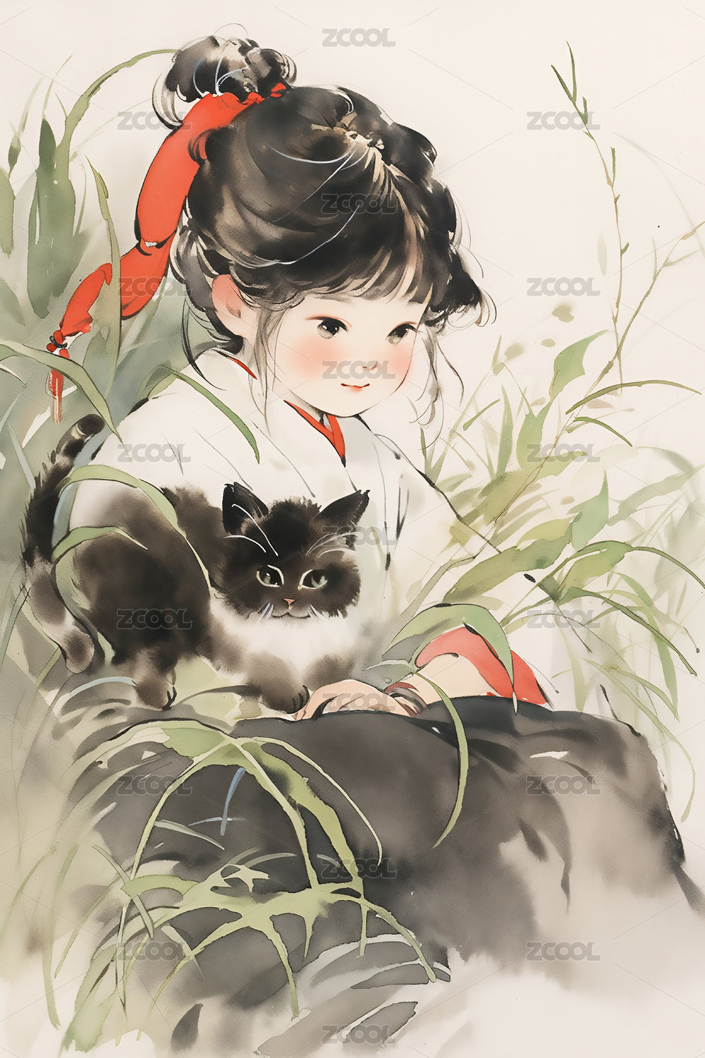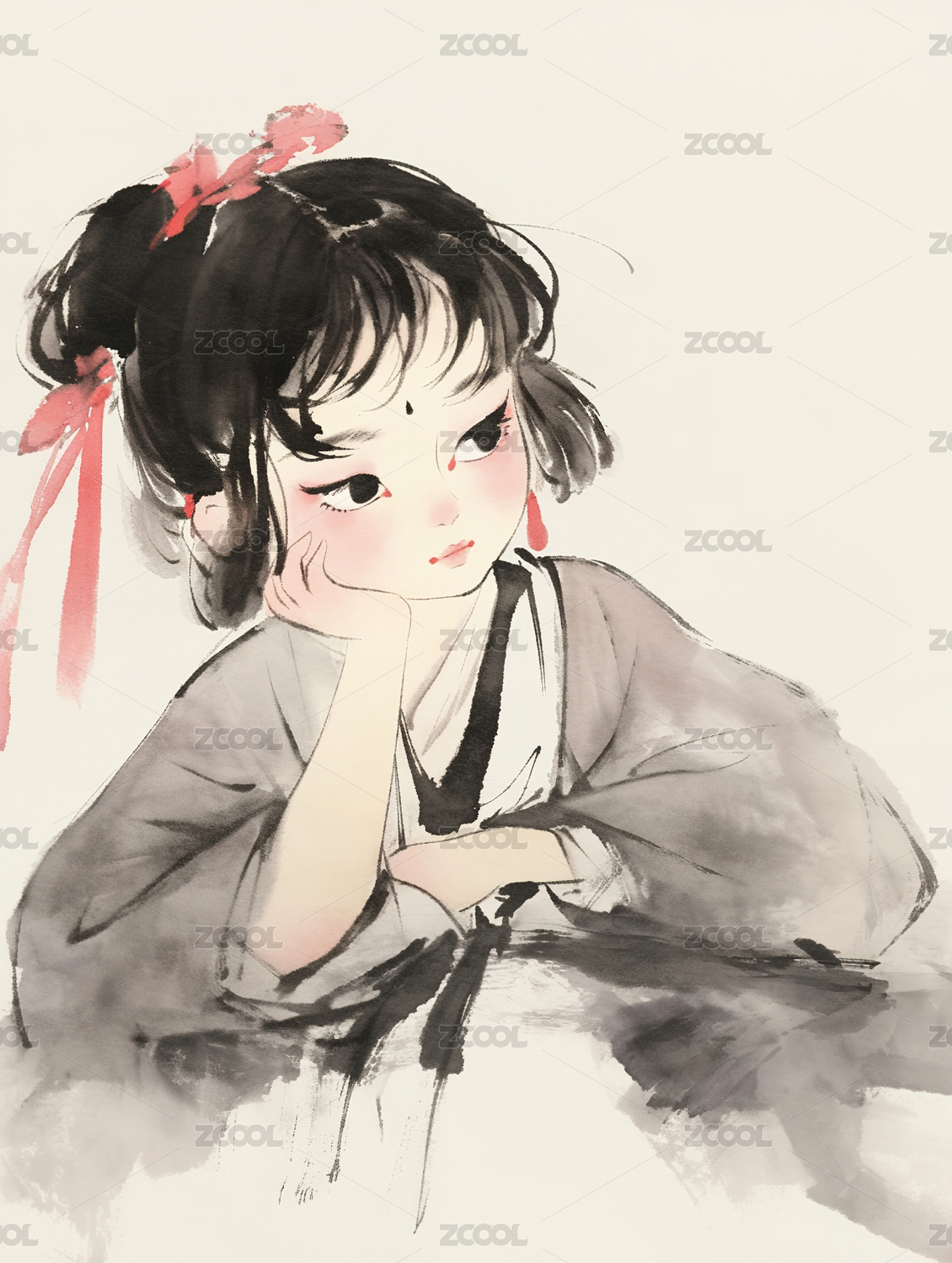 水墨中国风毛笔画国画图片工笔人物花鸟山水