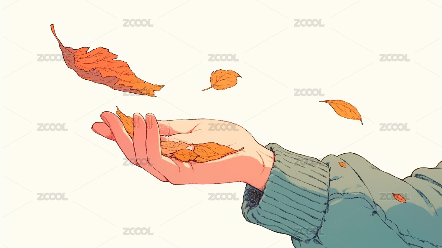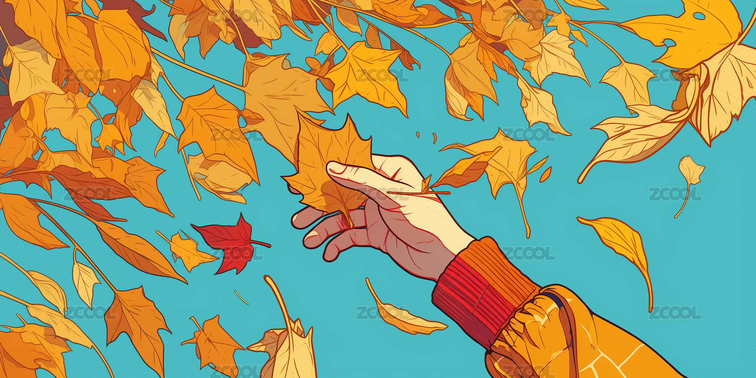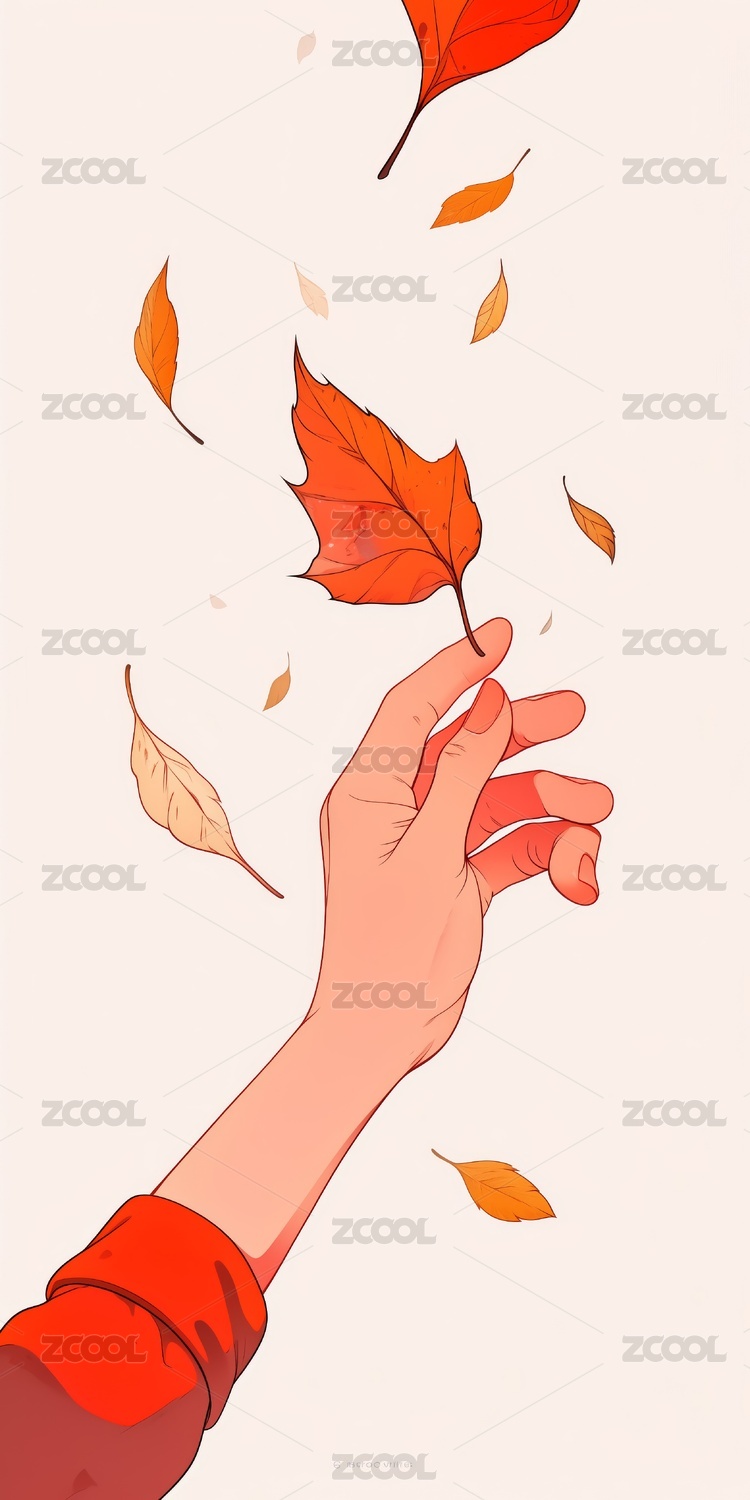 秋天一只举着的手拿着红叶枫叶扁平插画绘画