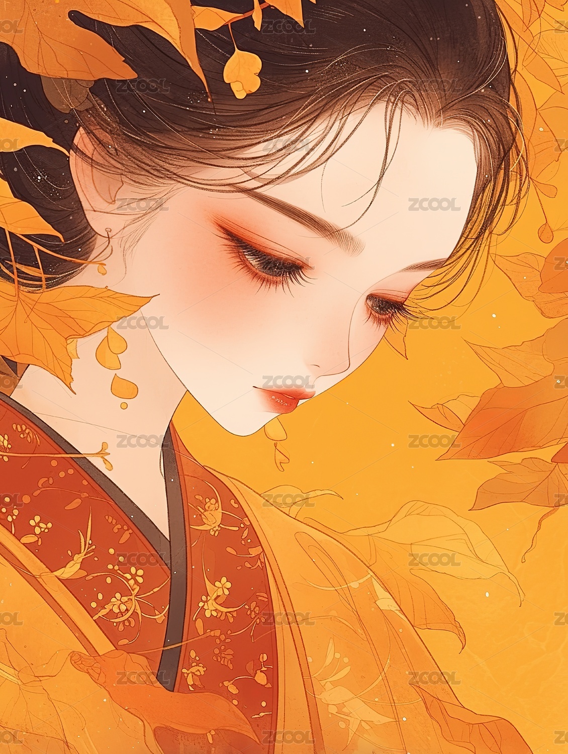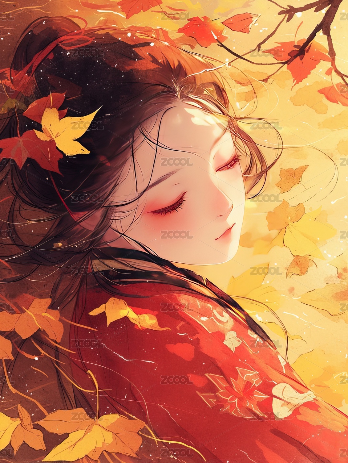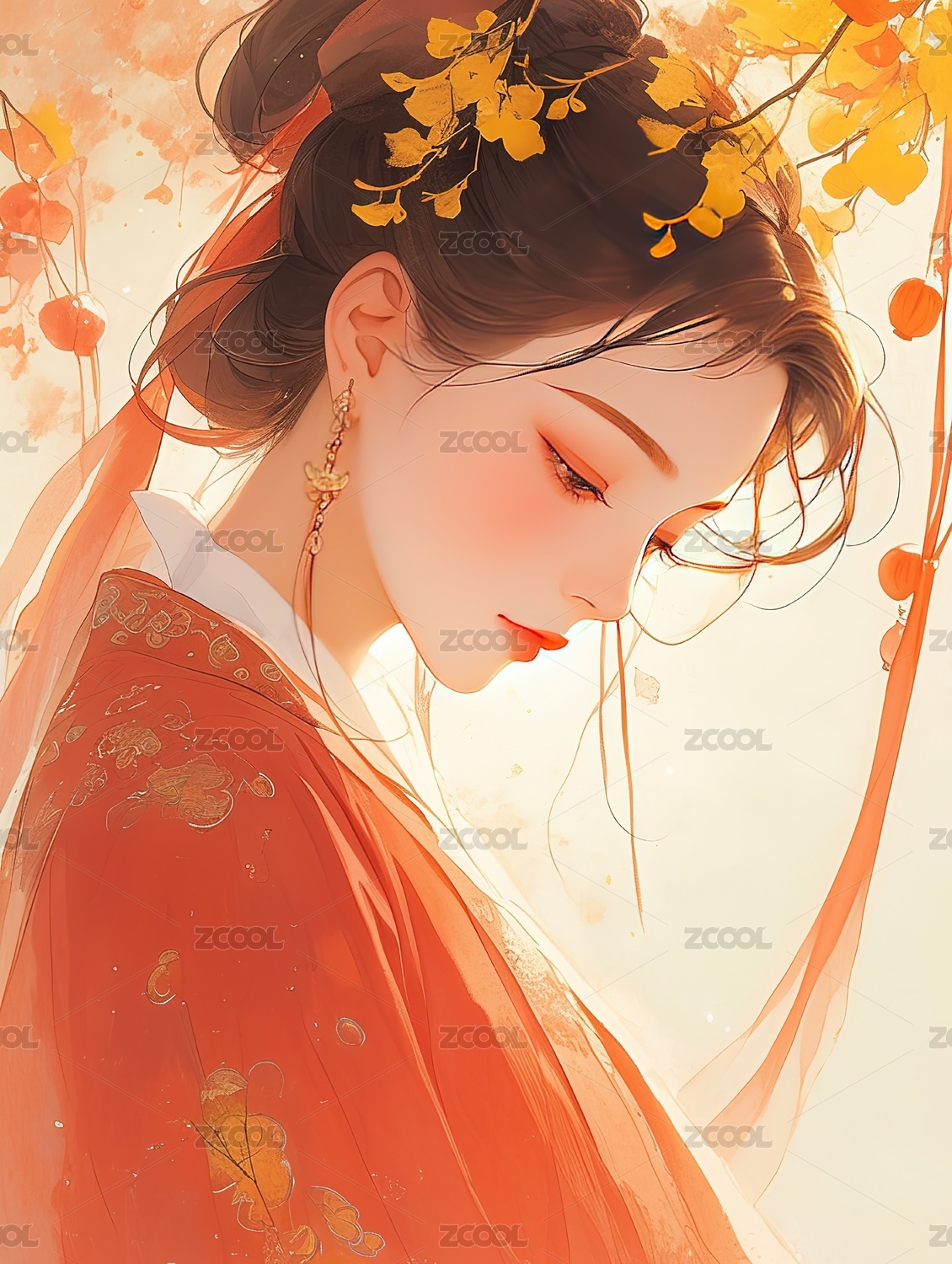 秋天的中国风少女