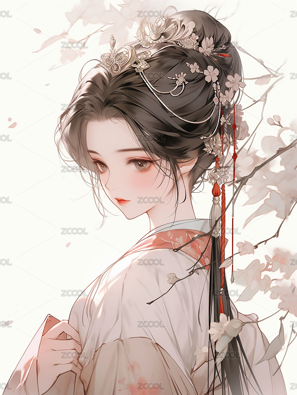 花枝点缀的古典美人