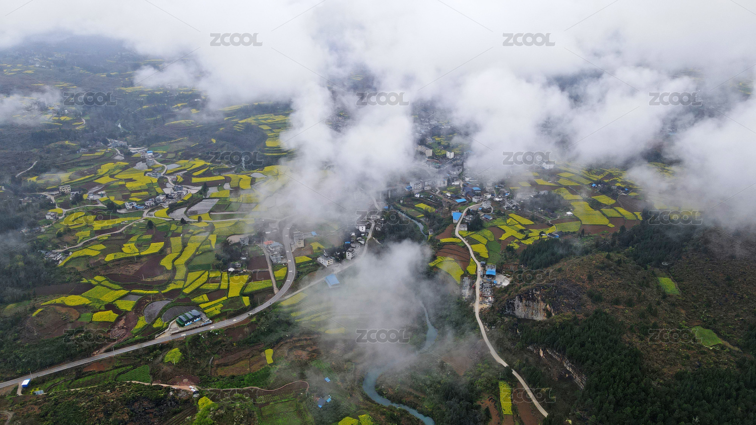 田园,丰收,晨雾,山川,云海,秋收,金黄,稻田,集镇,江山