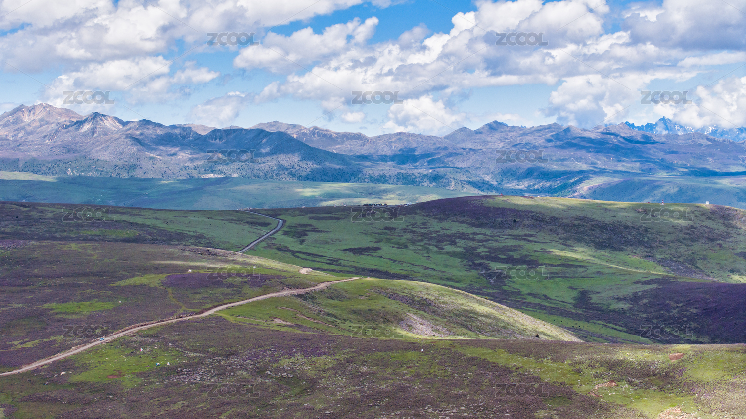 四川西部甘孜新都桥镇鱼子西景区山顶风光航