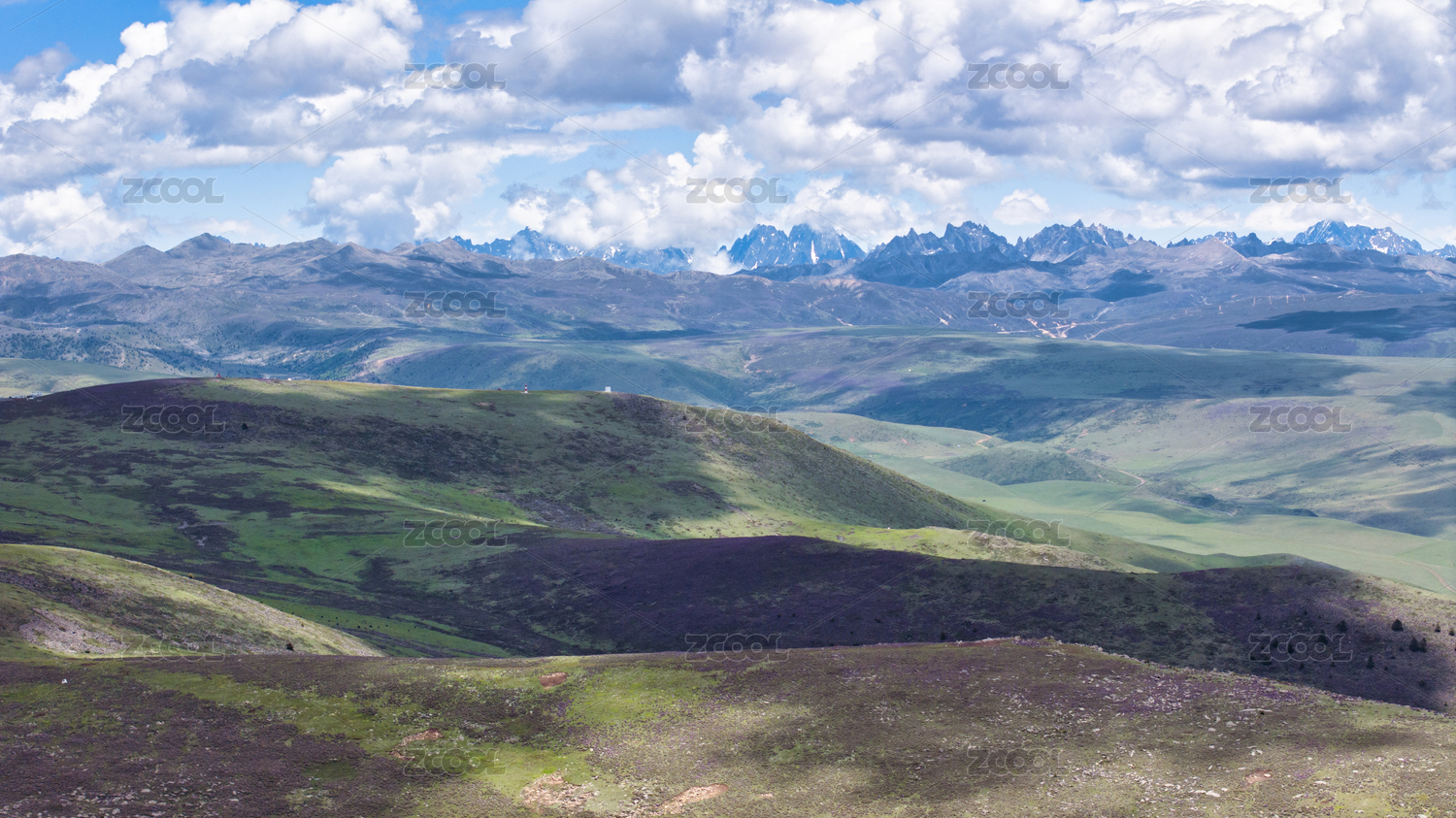 四川西部甘孜新都桥镇鱼子西景区远望雪山
