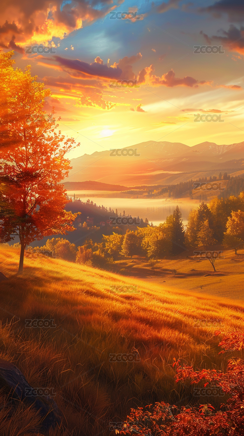 秋日山谷晨曦美景