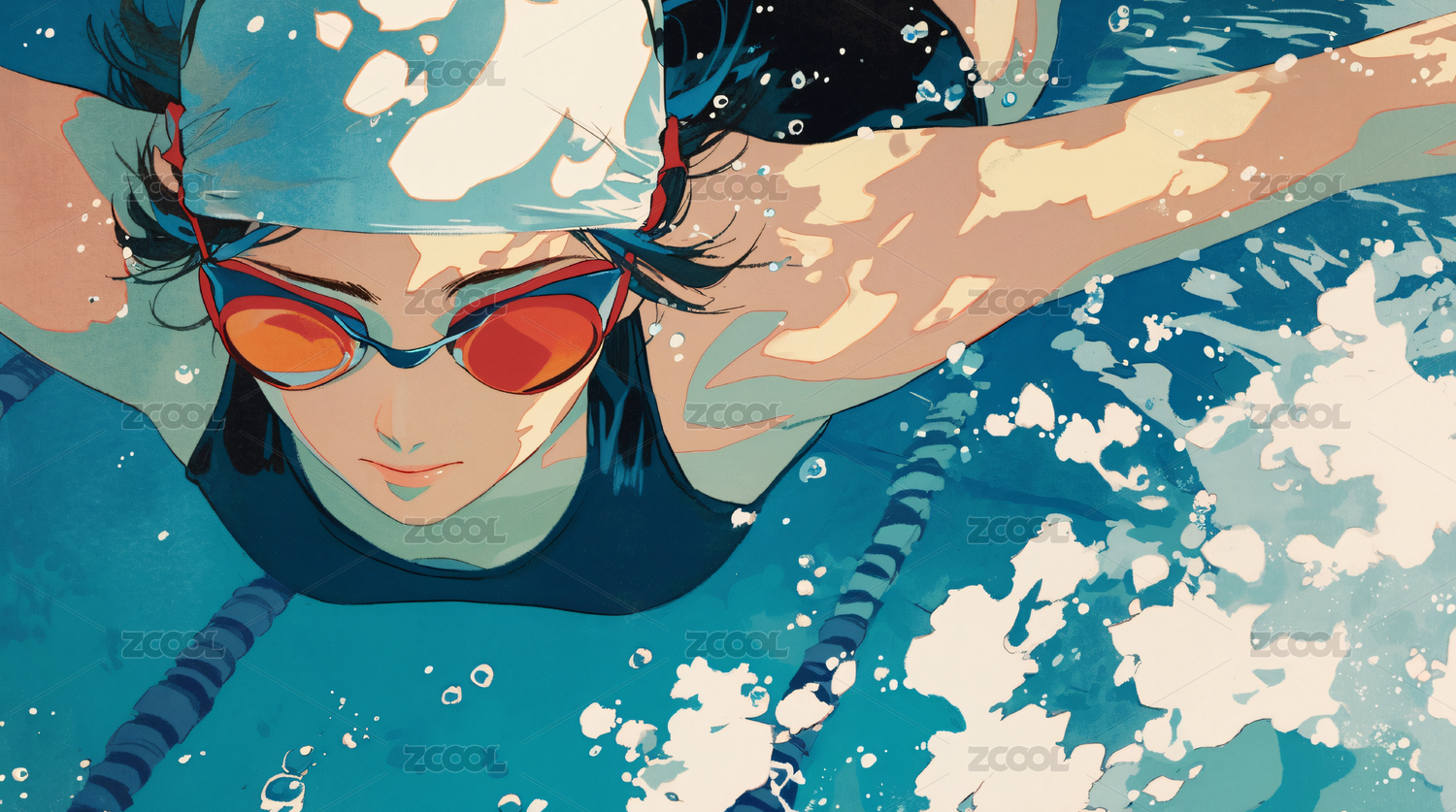 AIGC202401,游泳,女孩,水中,运动,健身,活力,青春,游泳池,健康