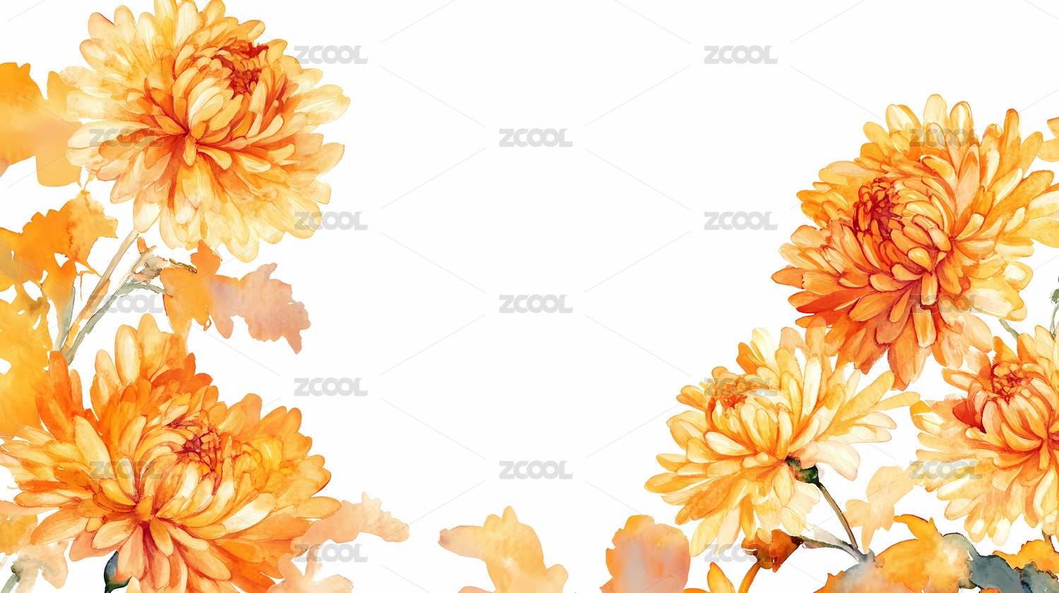 水彩菊花边框