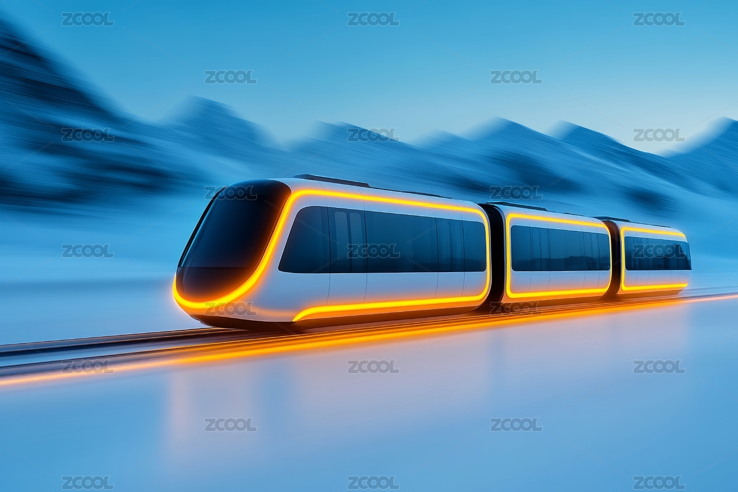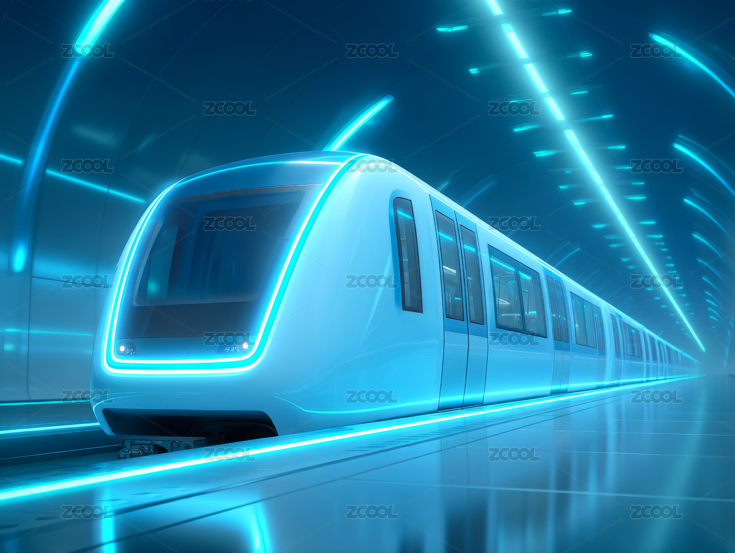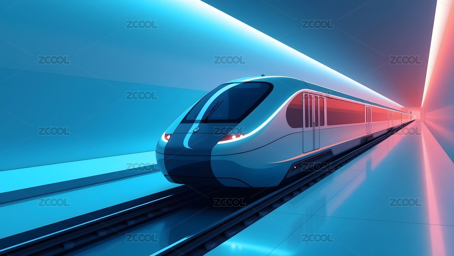 现代, 科技, 未来,列车, 蓝色背景, 夜景, 高速, 交通, 公共交通, 铁路