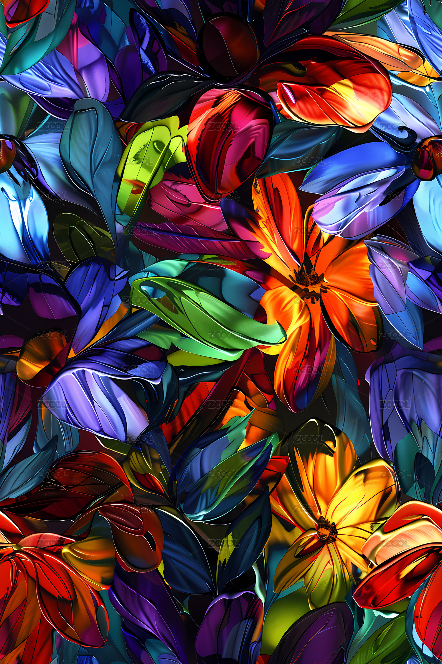 鲜艳的色彩抽象油画花朵艺术感装饰背景