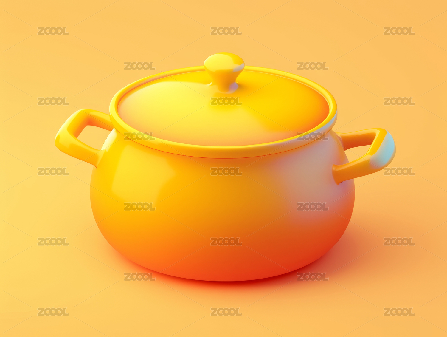 3D插画,现代设计,清新,橙色,创意,厨房,家居用品,炖锅,单色背景,烹饪