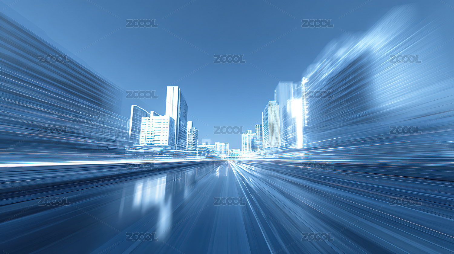 蓝色商务科技未来感光线光效城市建筑主视觉