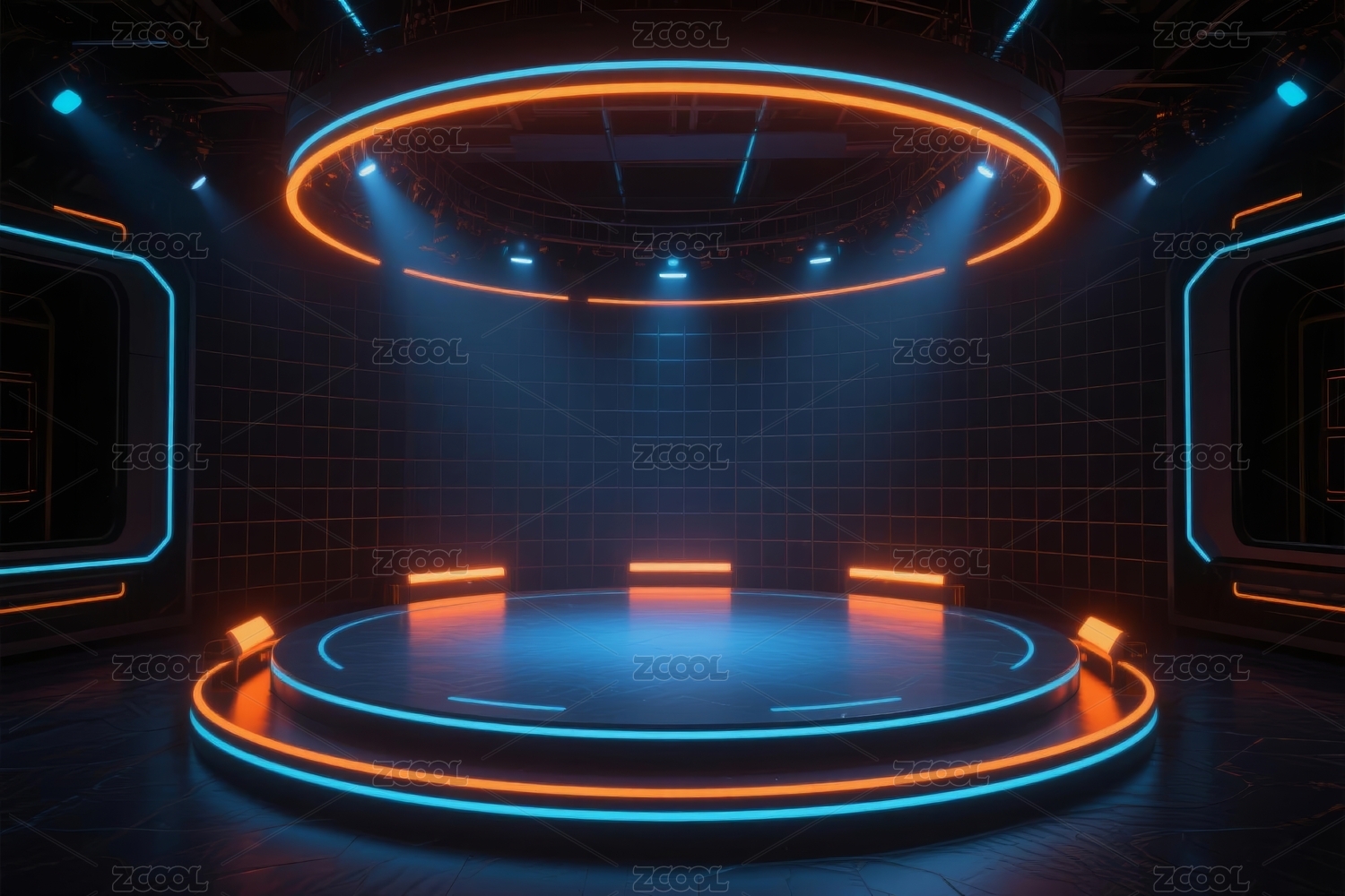 未来科技感房间中的霓虹灯舞台