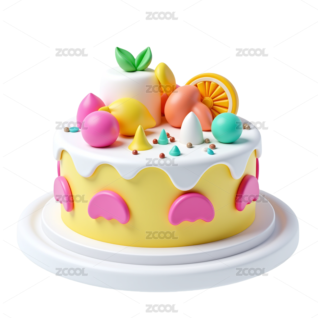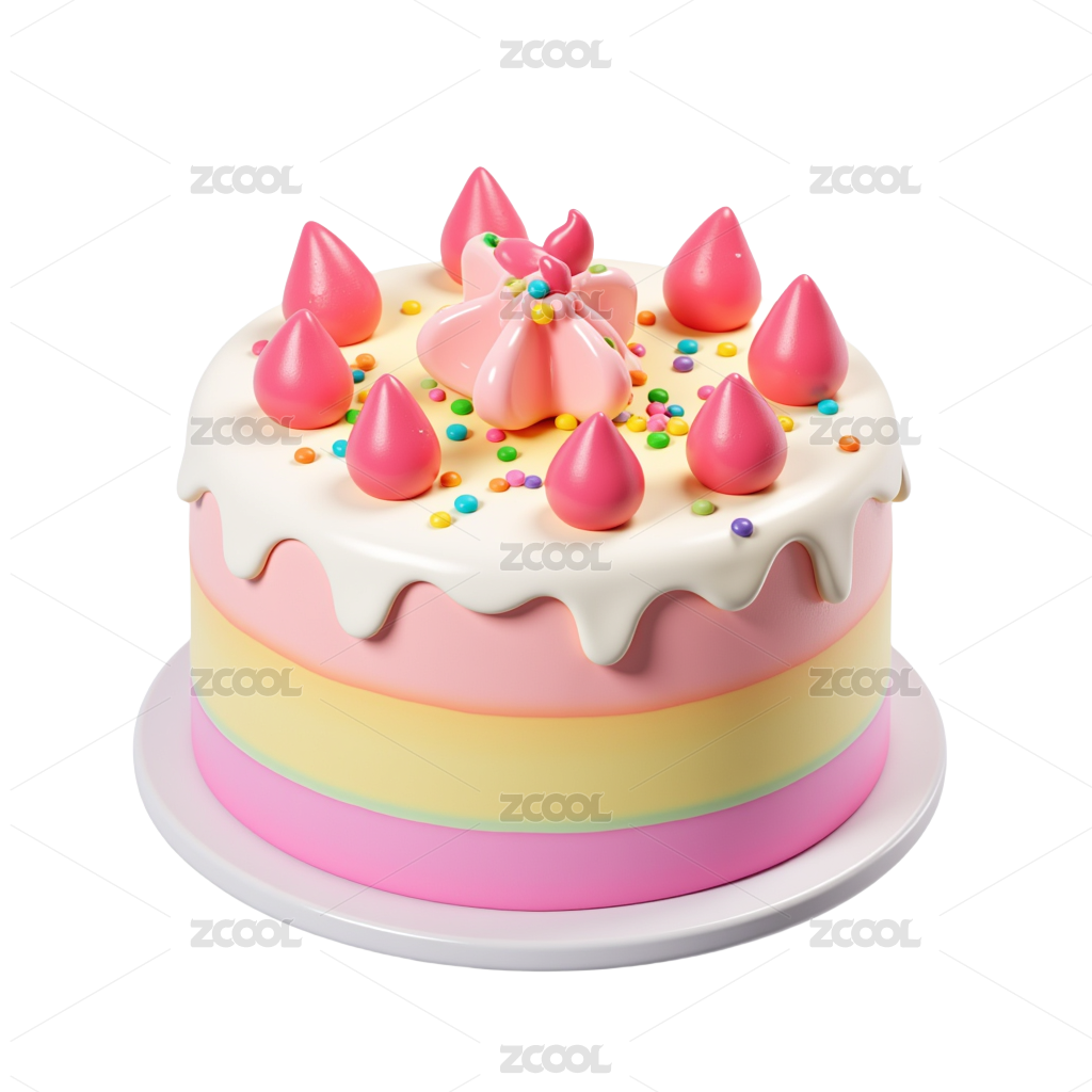 生日蛋糕3D渲染周年纪念日庆祝活动素材