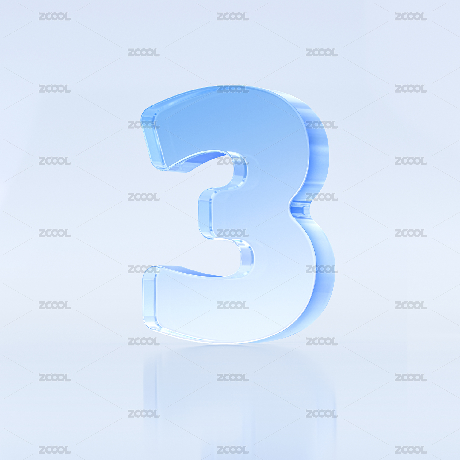 科技蓝白倒计时3天数字透光玻璃3D图标
