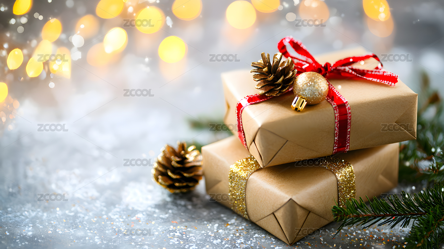 圣诞礼物 红色丝带 节日氛围