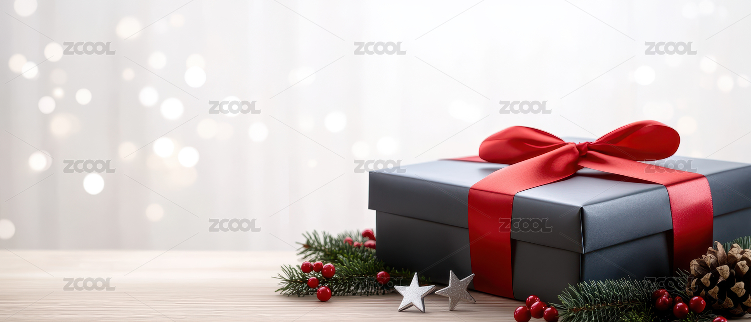 圣诞礼物盒 红丝带 节日氛围