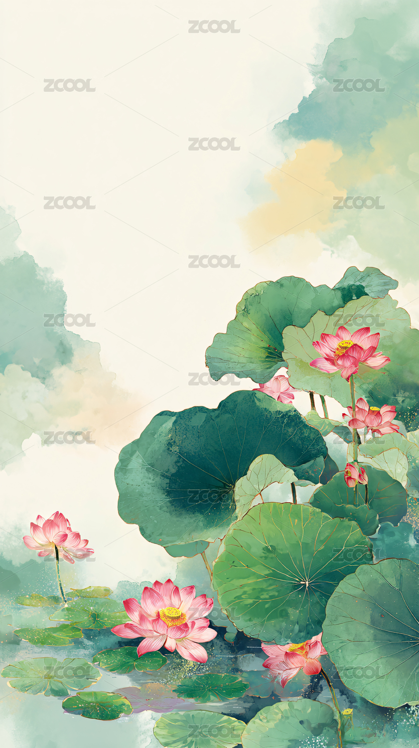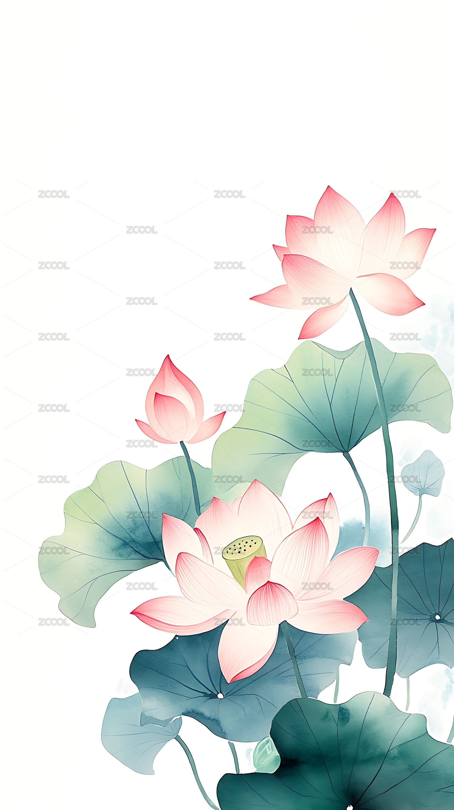 荷花水墨水彩中国风工笔画水墨意境荷花插画