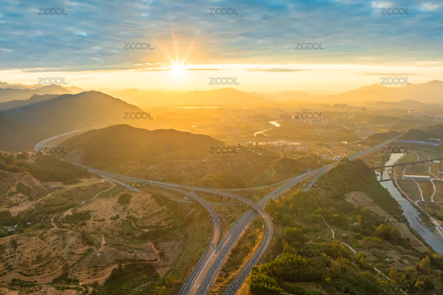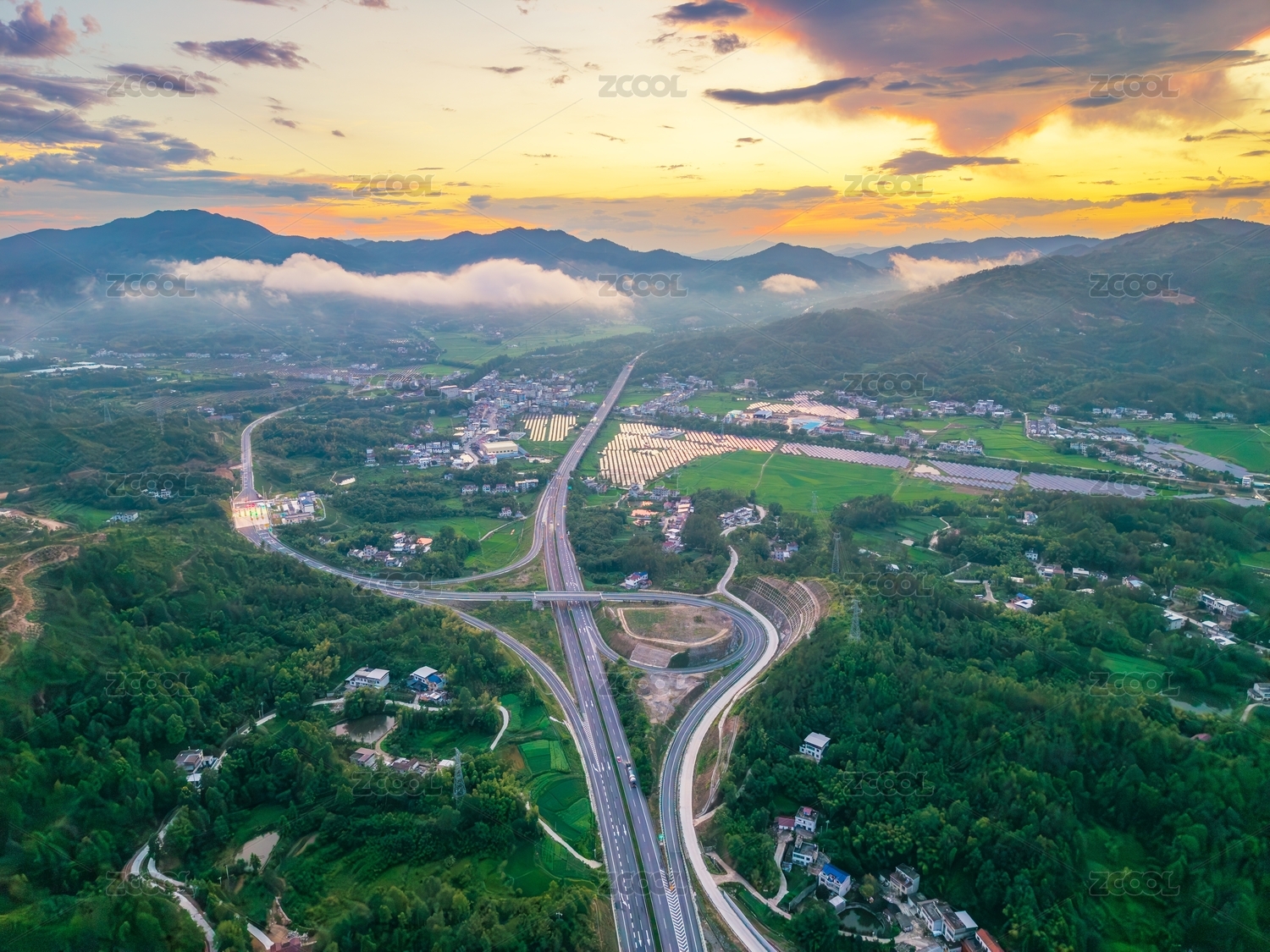 中国广西梧州蒙山北楼高速公路枢纽互通晨曦