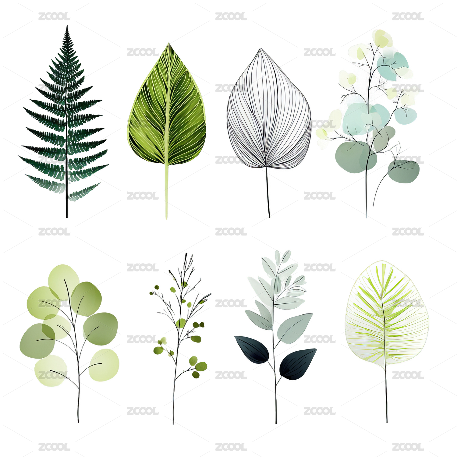 植物树叶自然园艺元素素材肌理森系装饰插画