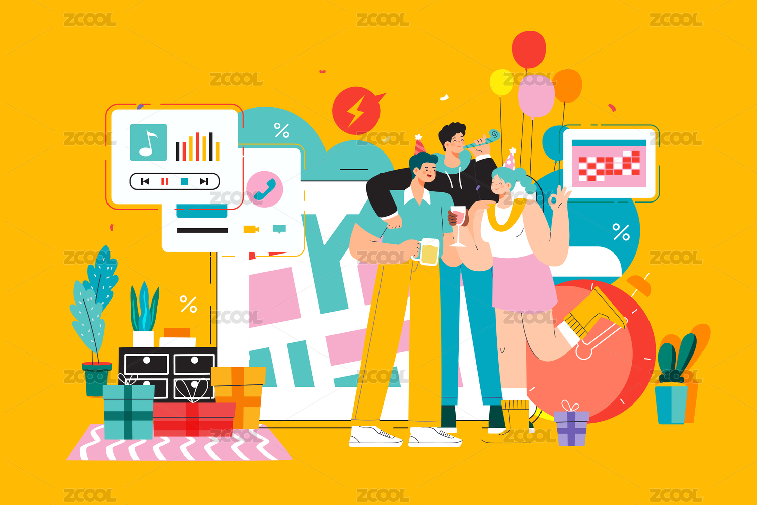 矢量,卡通,渐变,扁平,插画,插图,背景,元素,节日,电商
