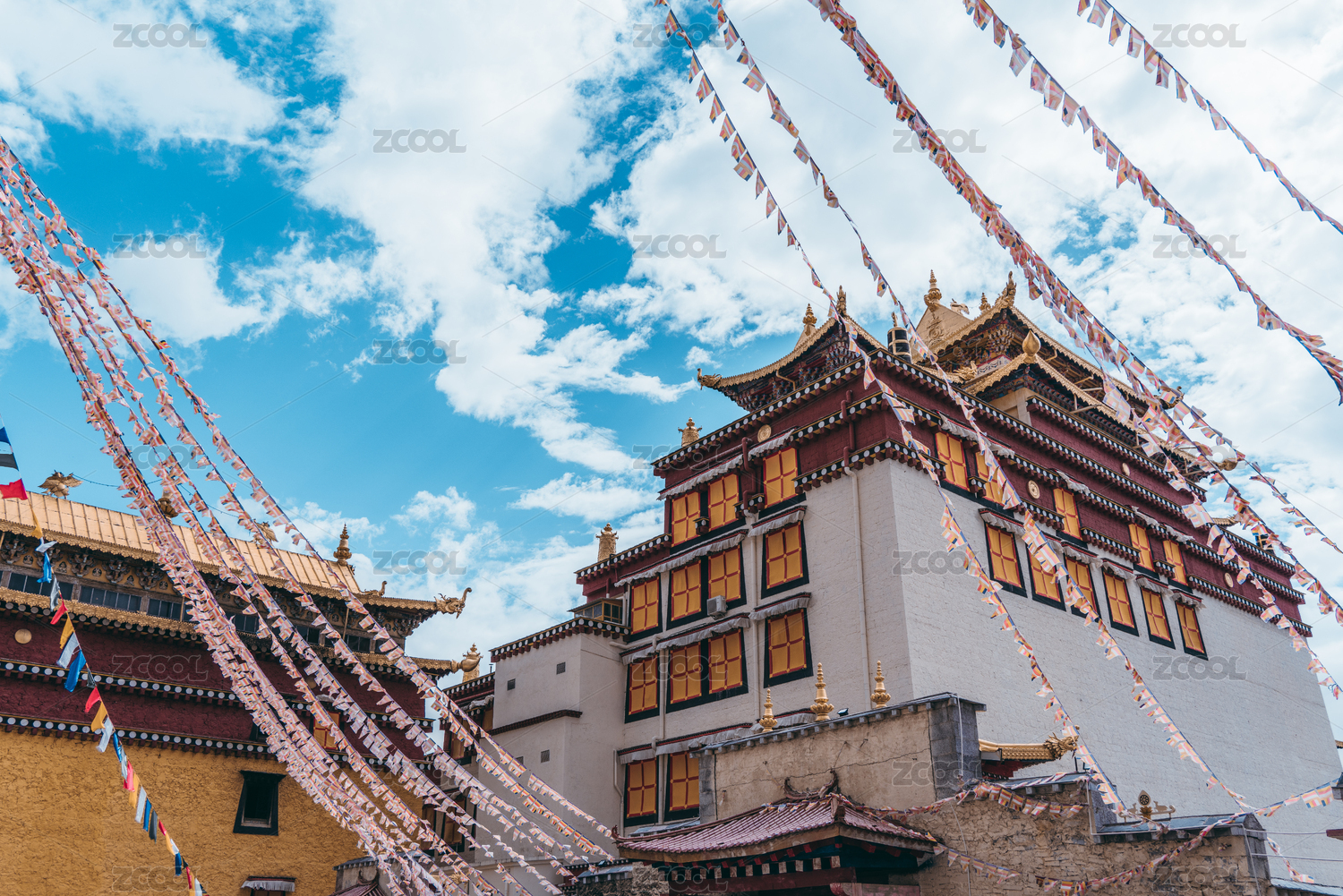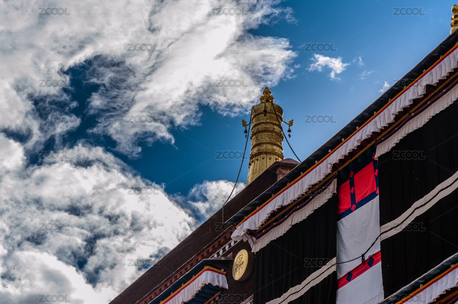 中国西藏日喀则扎什伦布寺精美的屋顶