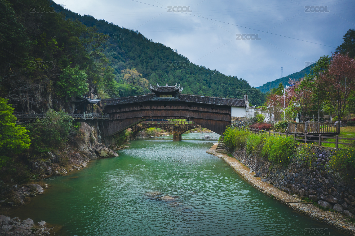 中国浙江丽水庆元月山村古廊桥步蟾桥