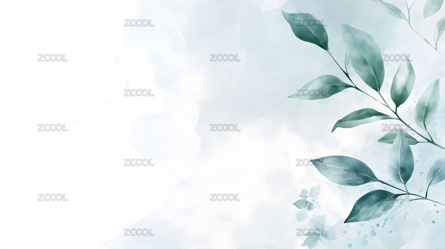 水彩绿叶静谧意境
